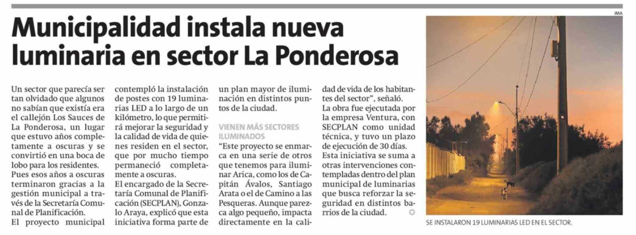 Título: Municipalidad instala nueva luminaria en sector La Ponderosa