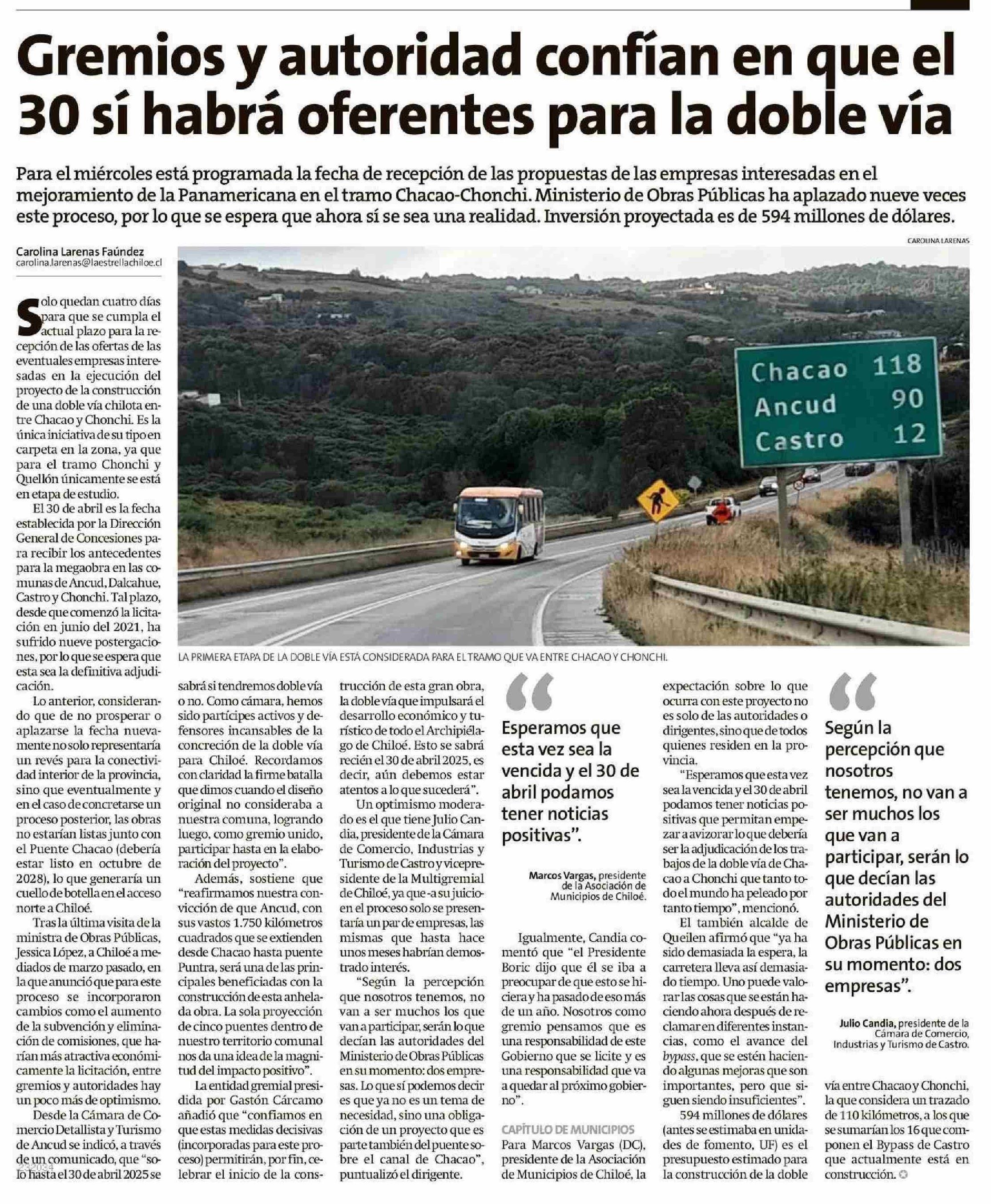 Gremios y autoridad confían en que el 30 sí habrá oferentes para la doble vía 26-04-2025 La Estrella de Chiloé |