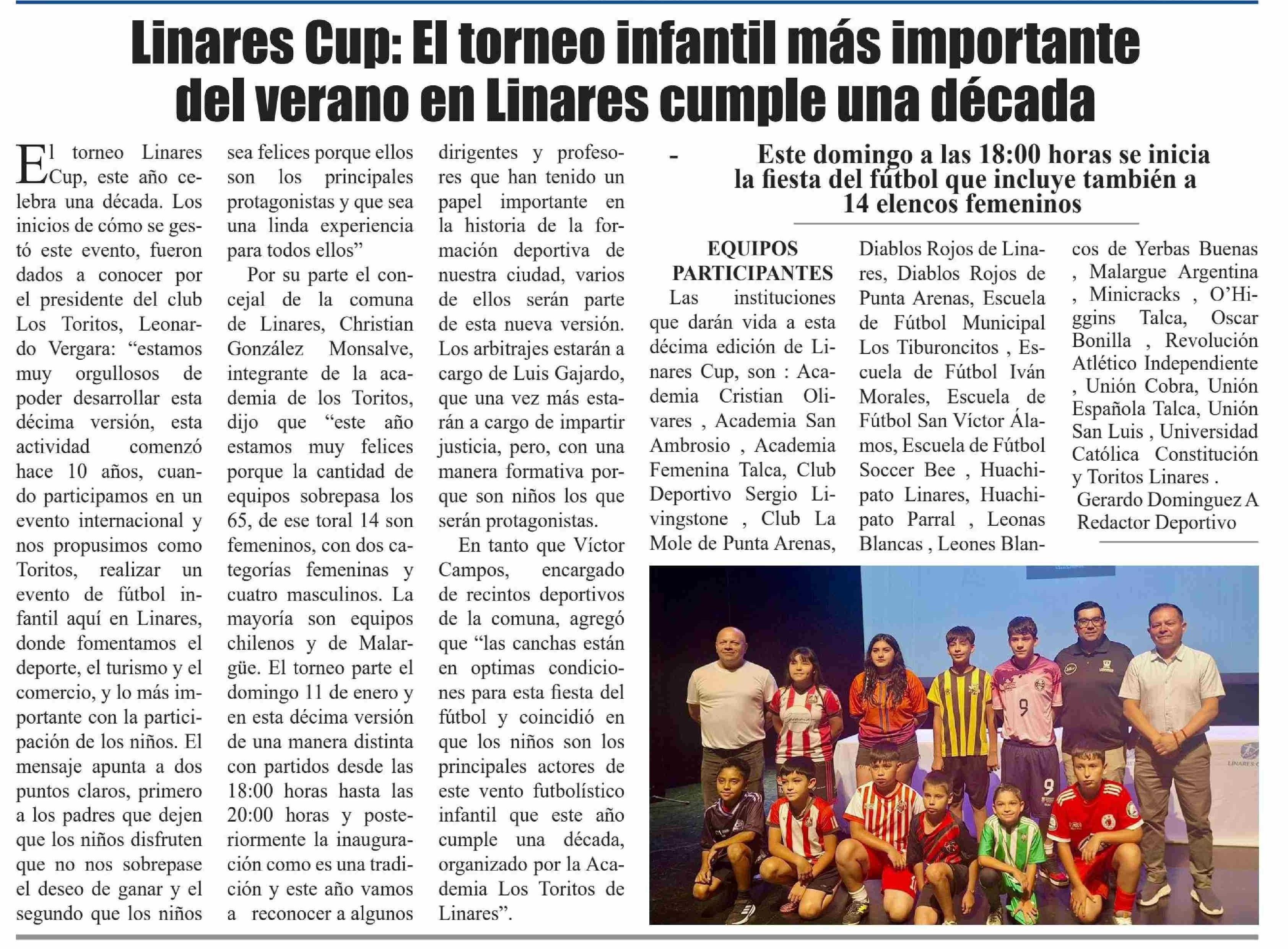 Linares Cup: El torneo infantil más importante del verano en Linares cumple una década 08-01-2026 El Heraldo |