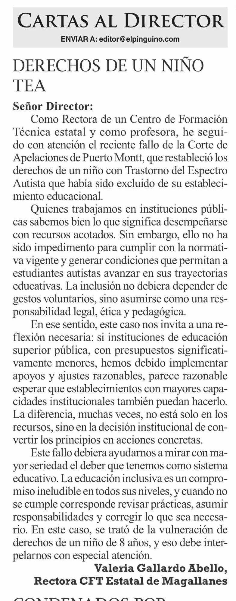 Cartas: DERECHOS DE UN NIÑO TEA