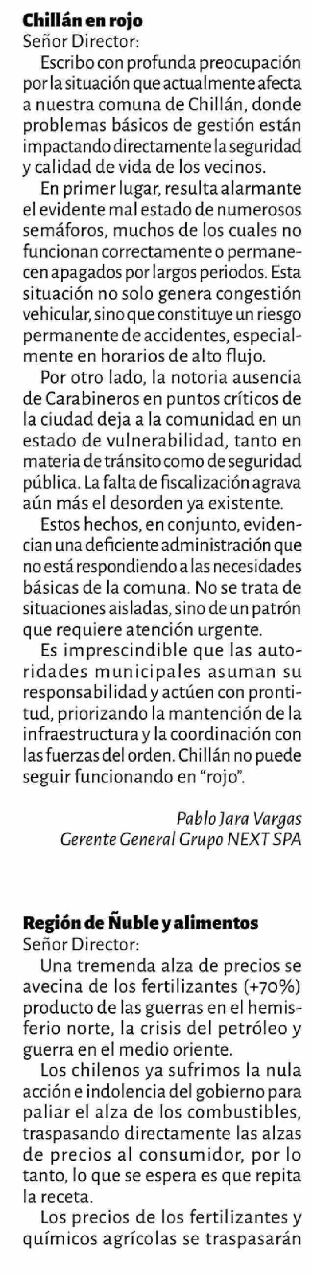 Fecha: 18-04-2026 Sector: Cartas Región: Región del Ñuble