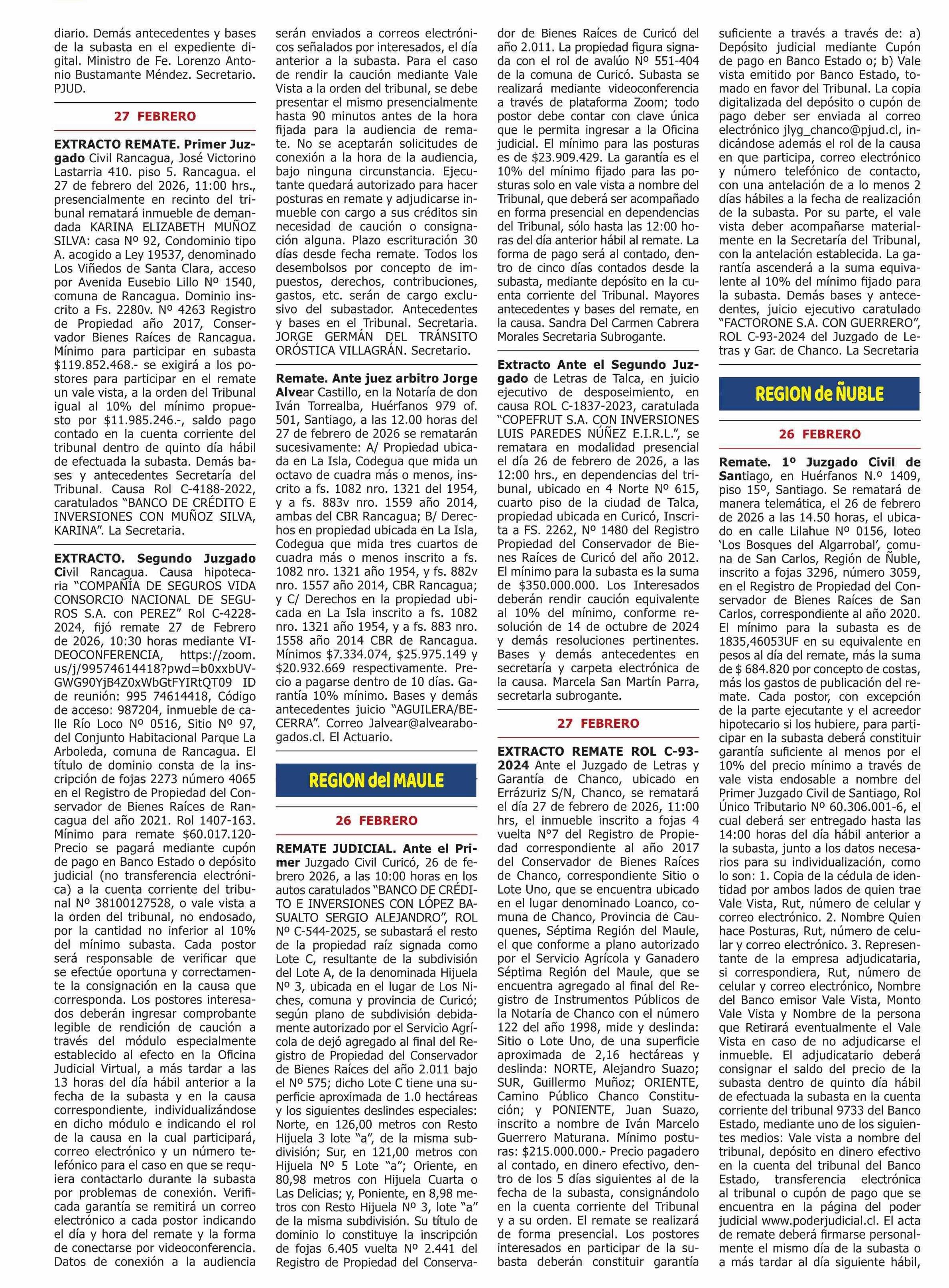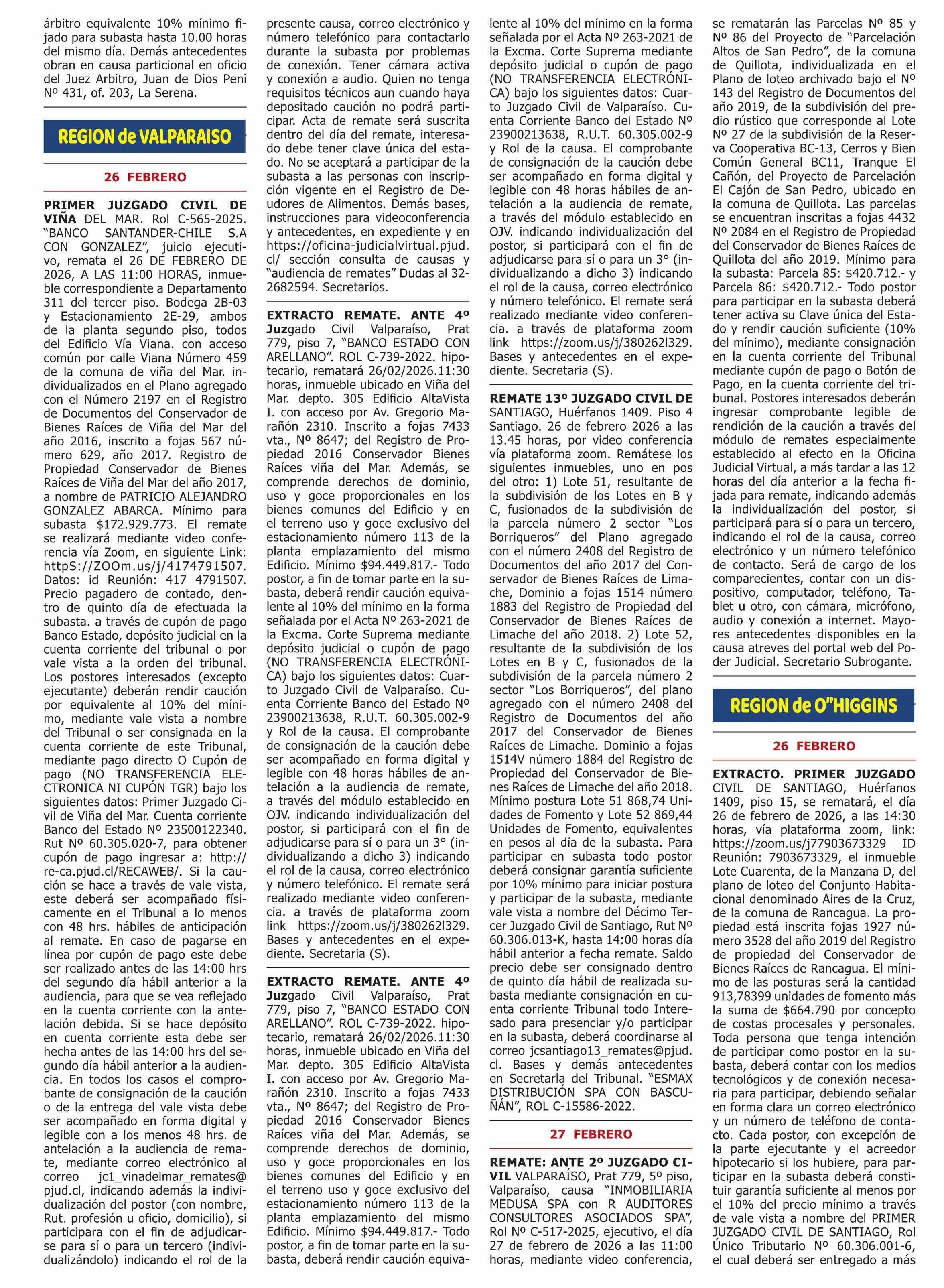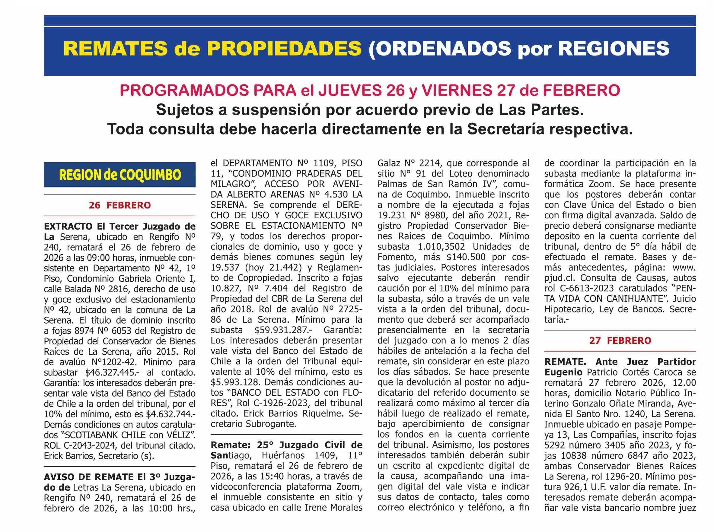 Título: REMATES de PROPIEDADES (ORDENADOS por REGIONES