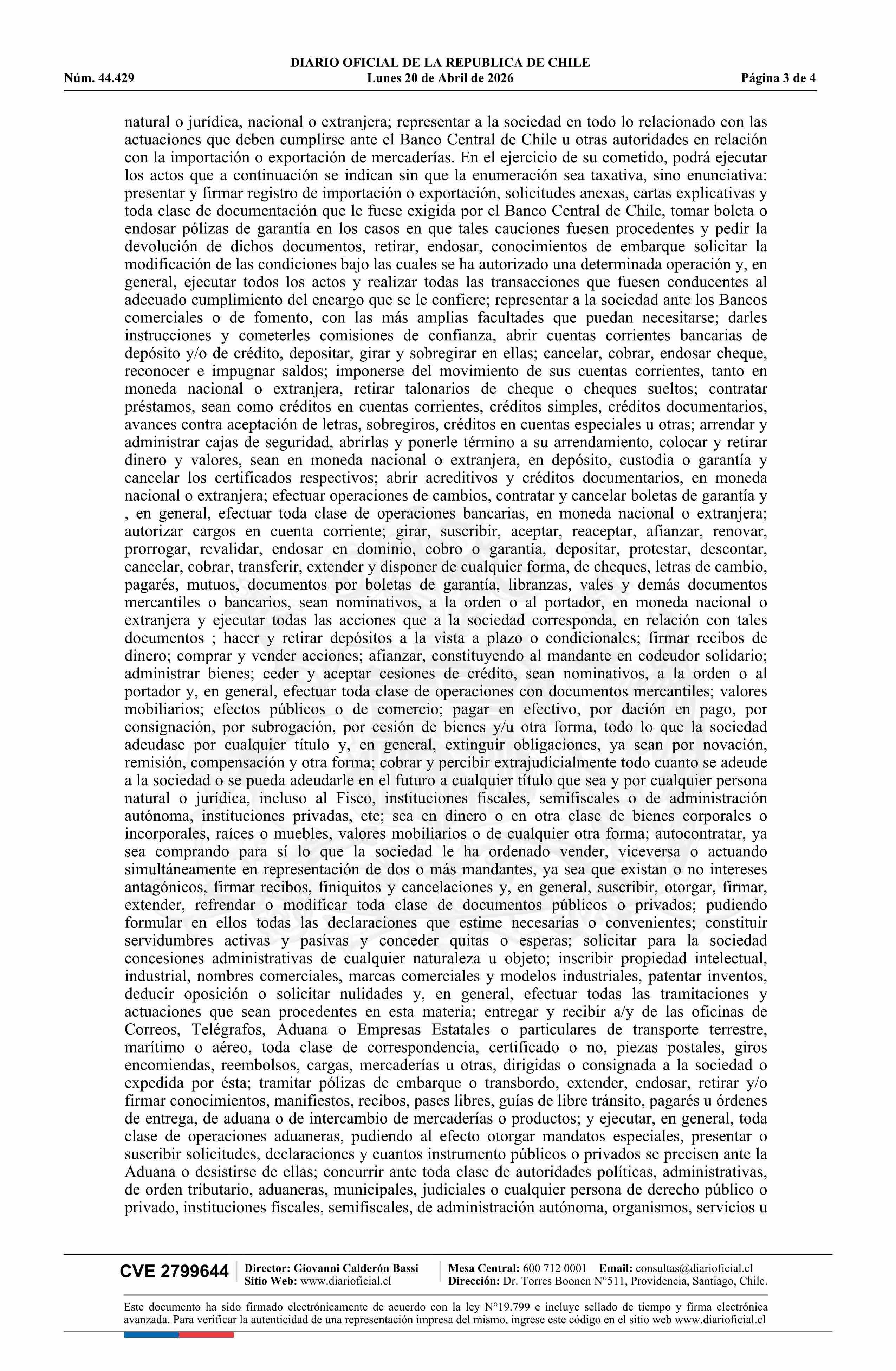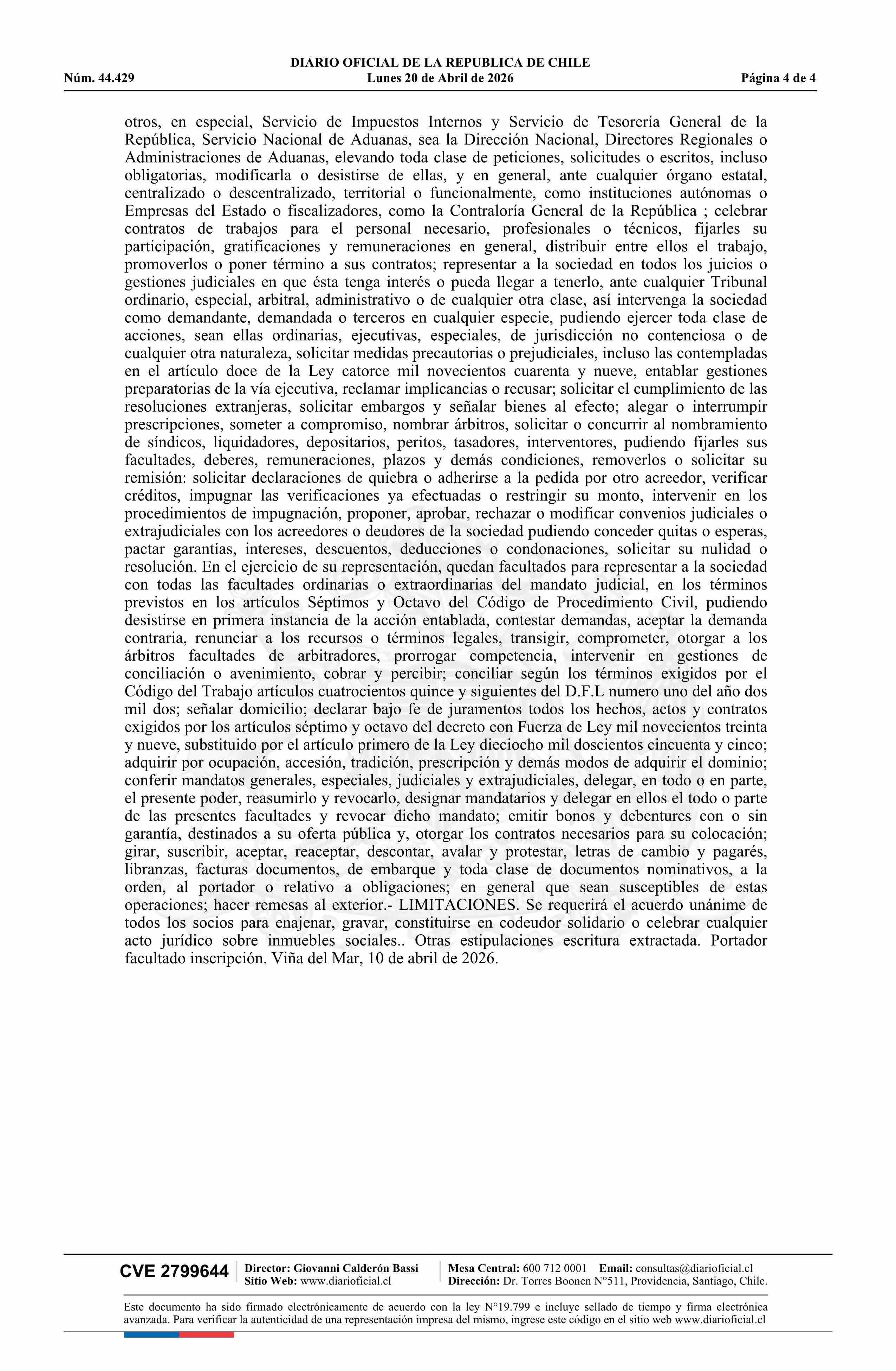 INVERSIONES, INMOBILIARIA Y COMERCIALIZADORA JORGE ANDONIE Y COMPAÑIA LIMITADA 76.256.420-3* 20-04-2026 Diario Oficial Edición Electrónica |
