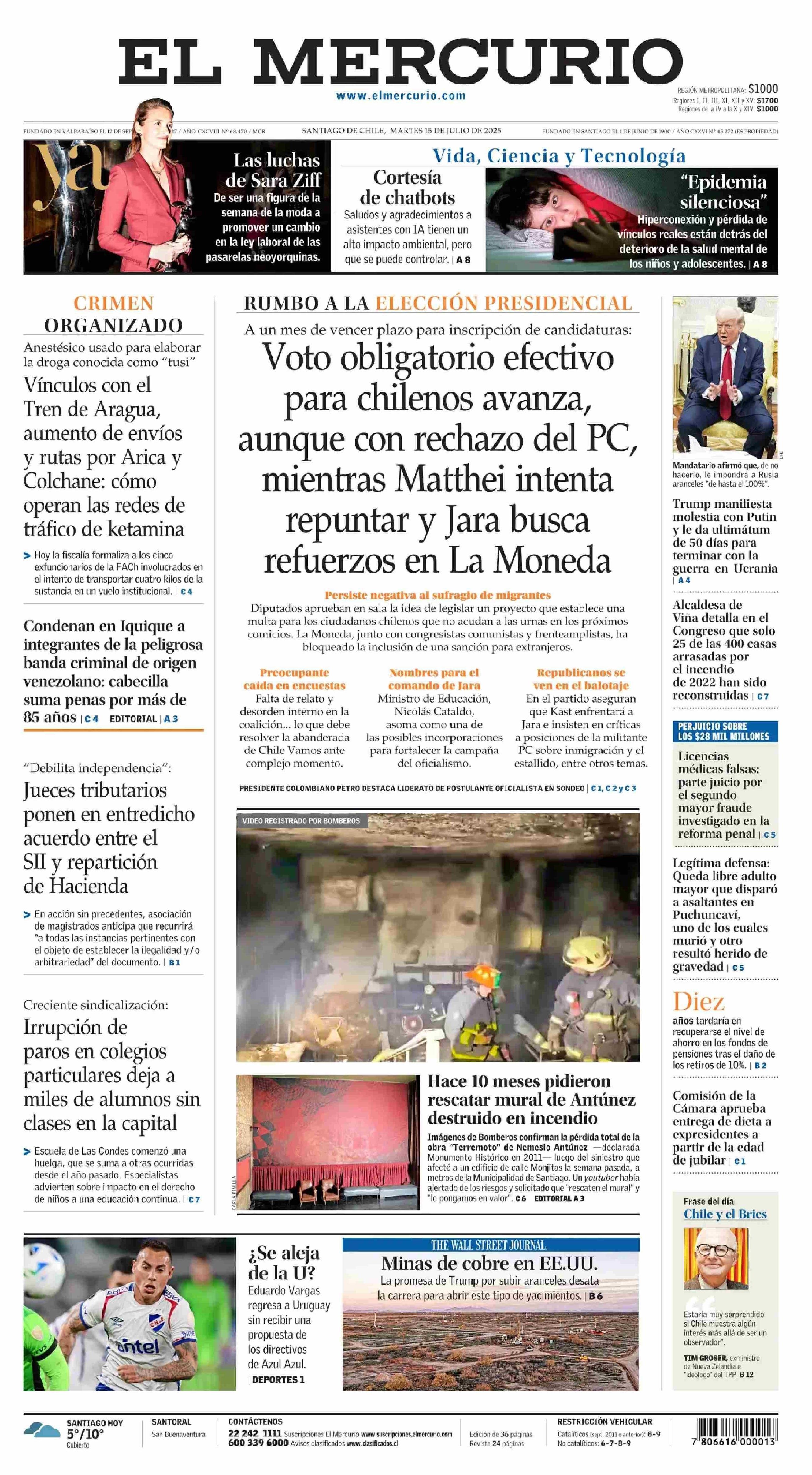 PORTADA EL MERCURIO (A) - CHILE 15-07-2025 El Mercurio |