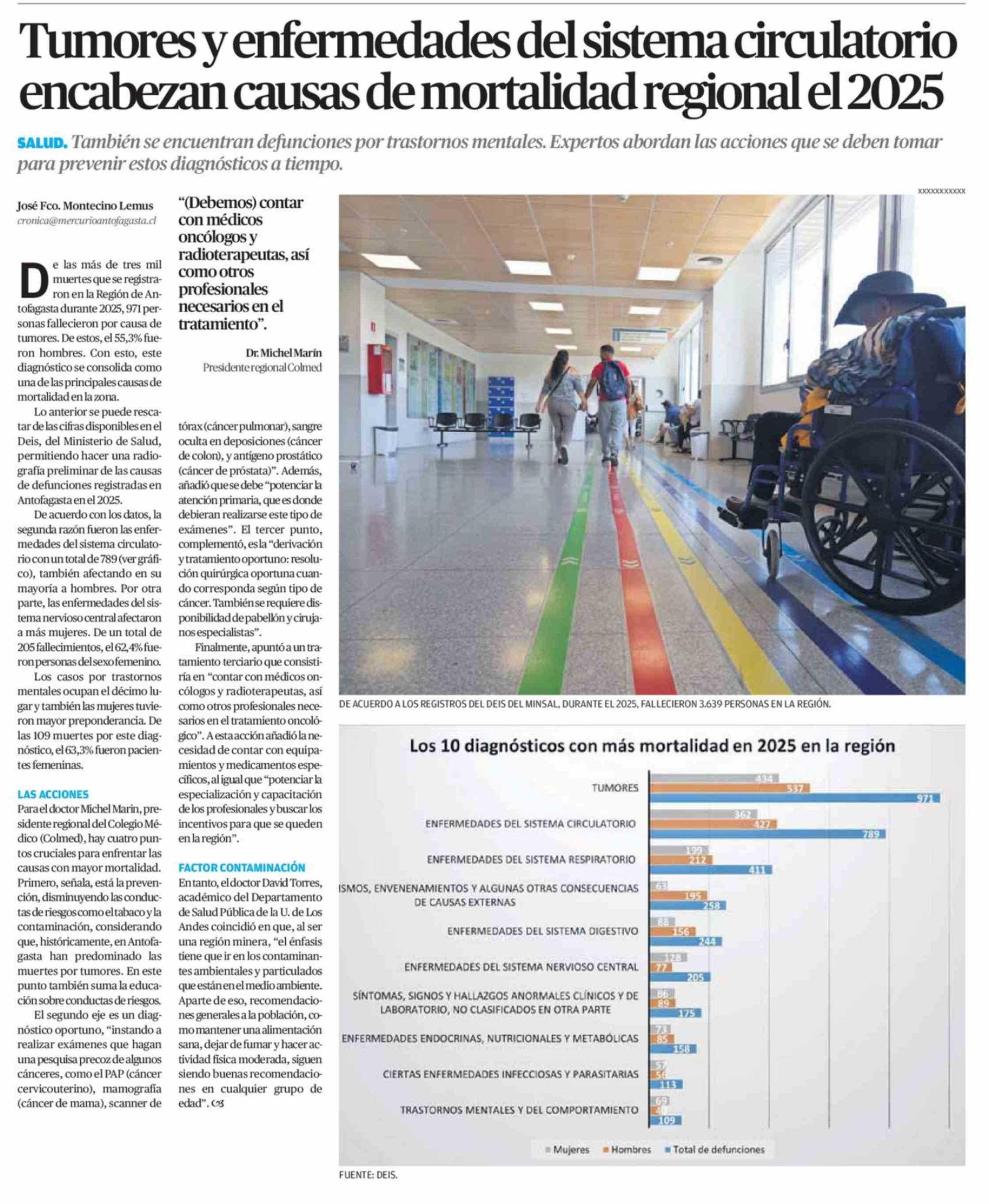 Tumores y enfermedades del sistema circulatorio encabezan causas de mortalidad regional el 2025 23-02-2026 El Mercurio de Calama |