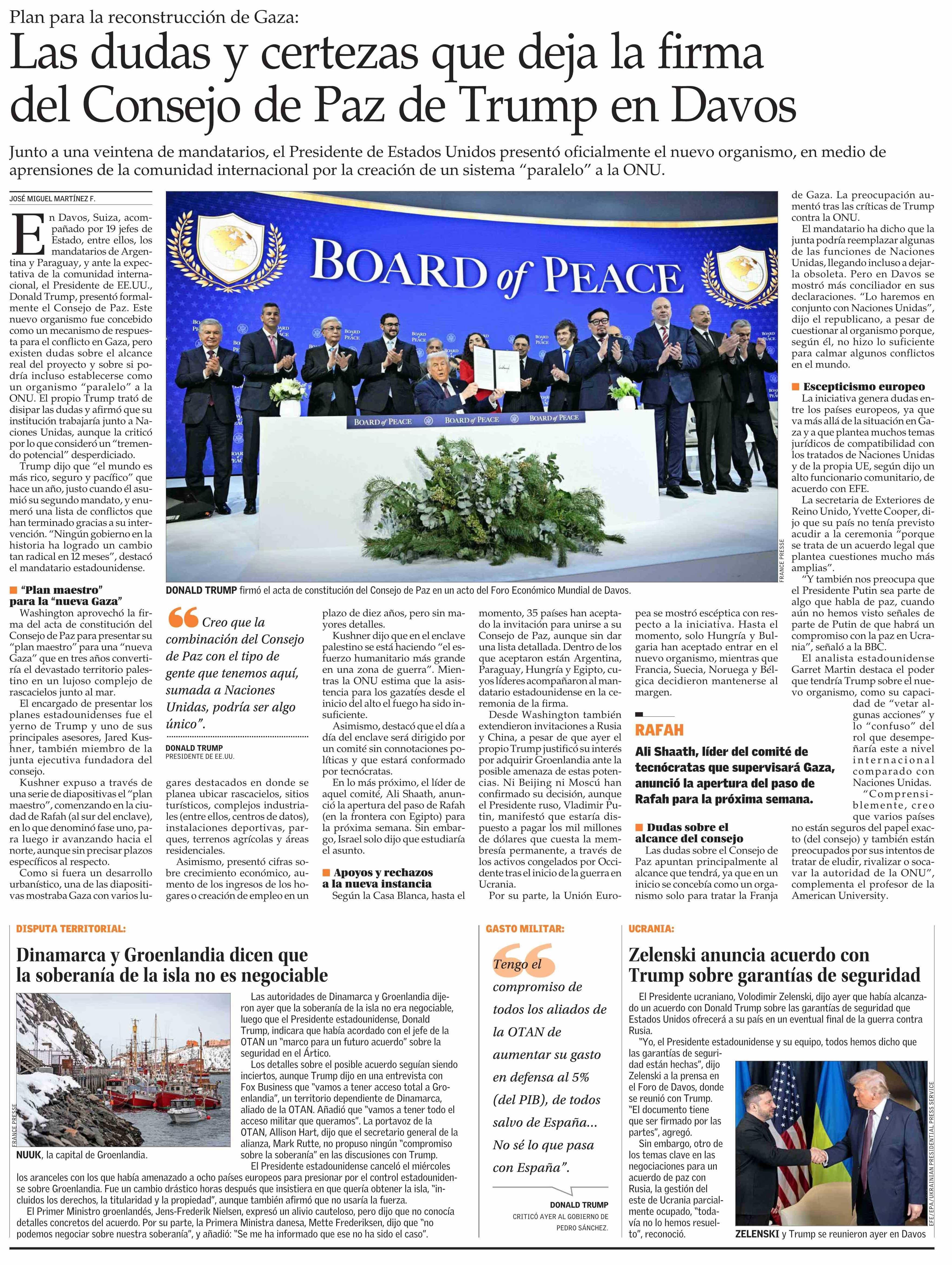 Las dudas y certezas que deja la firma del Consejo de Paz de Trump en Davos 23-01-2026 El Mercurio |