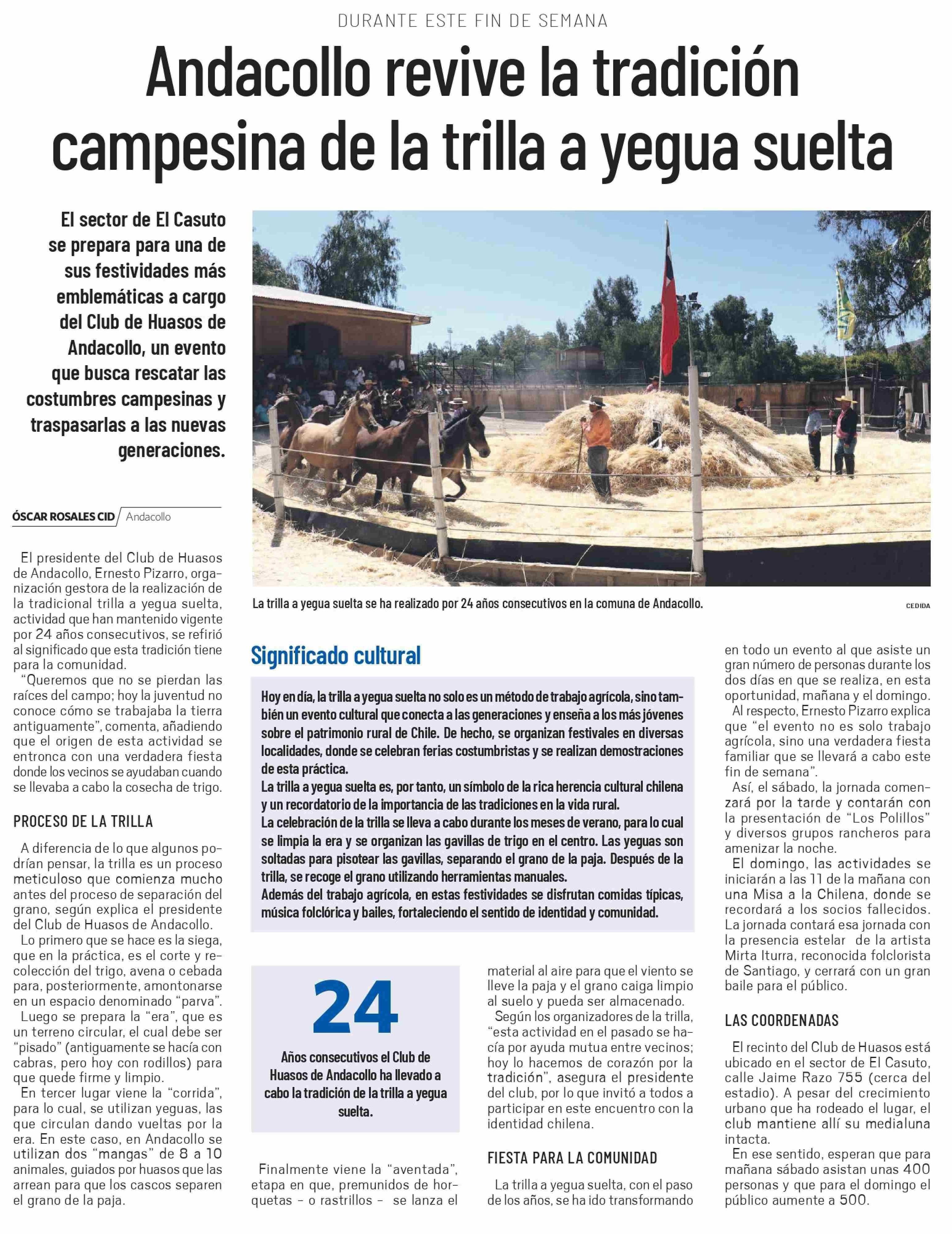 Título: Andacollo revive la tradición campesina de la trilla a yegua suelta