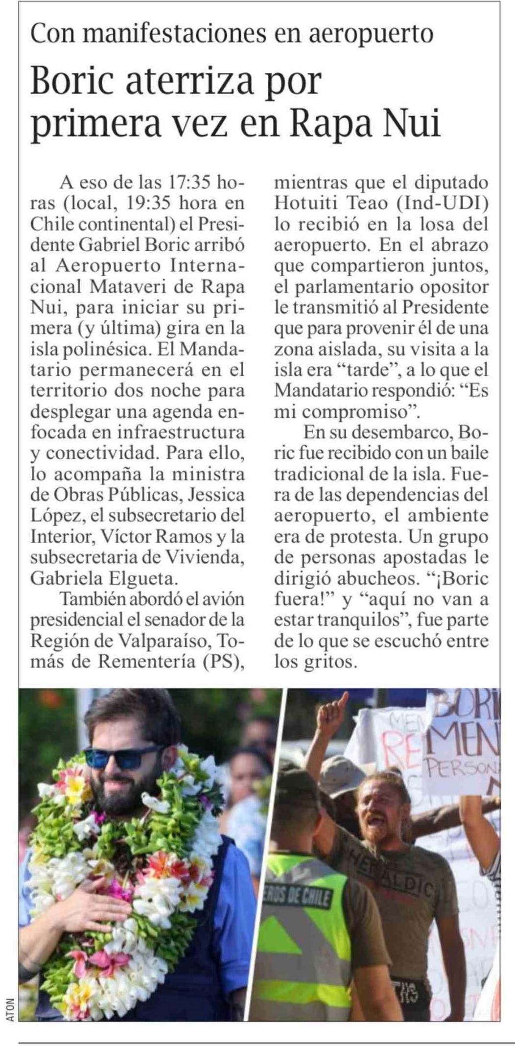 | Título: | Boric aterriza por primera vez en Rapa Nui |