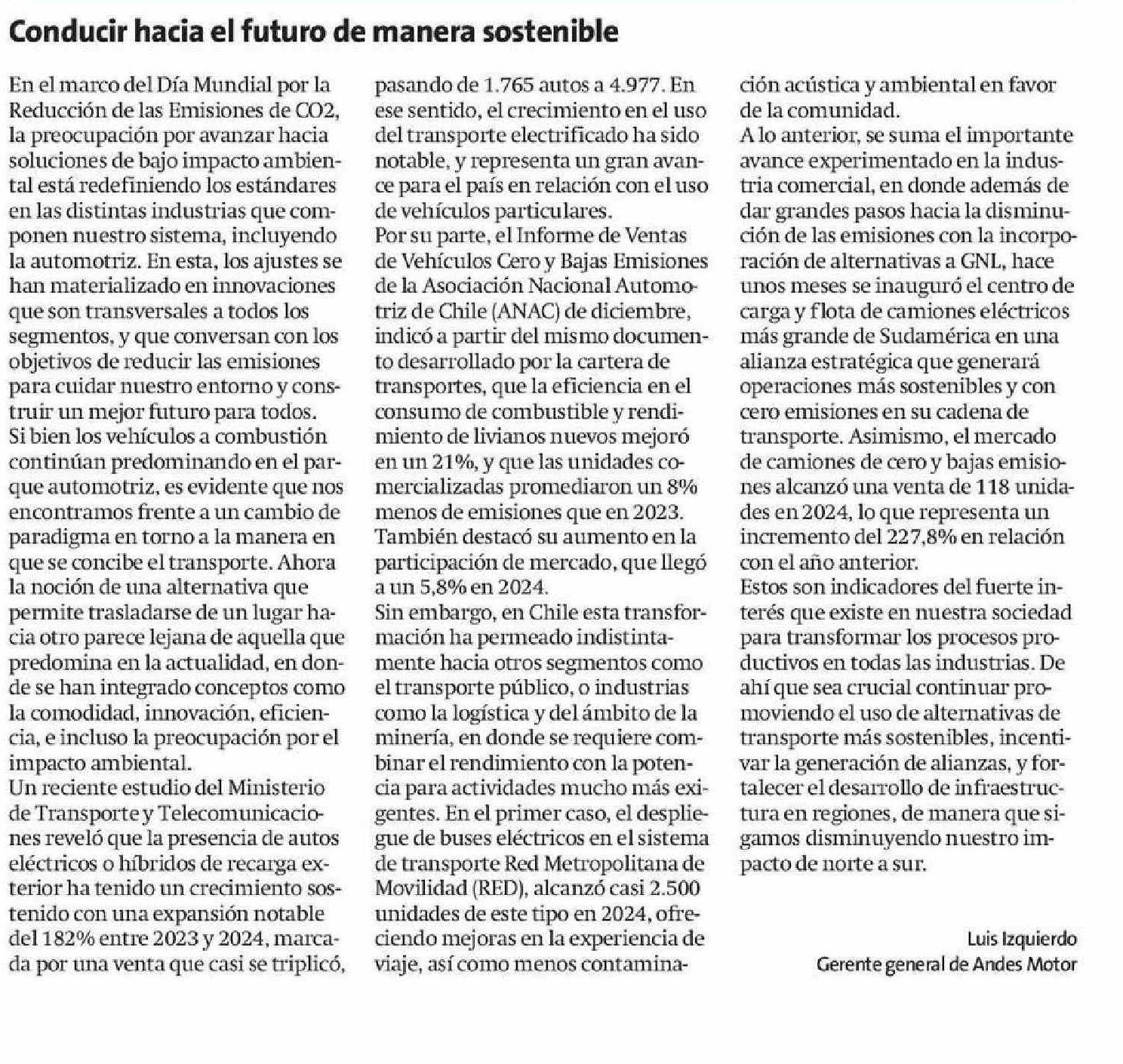 Conducir hacia el futuro de manera sostenible 30-01-2025 La Estrella de Arica |