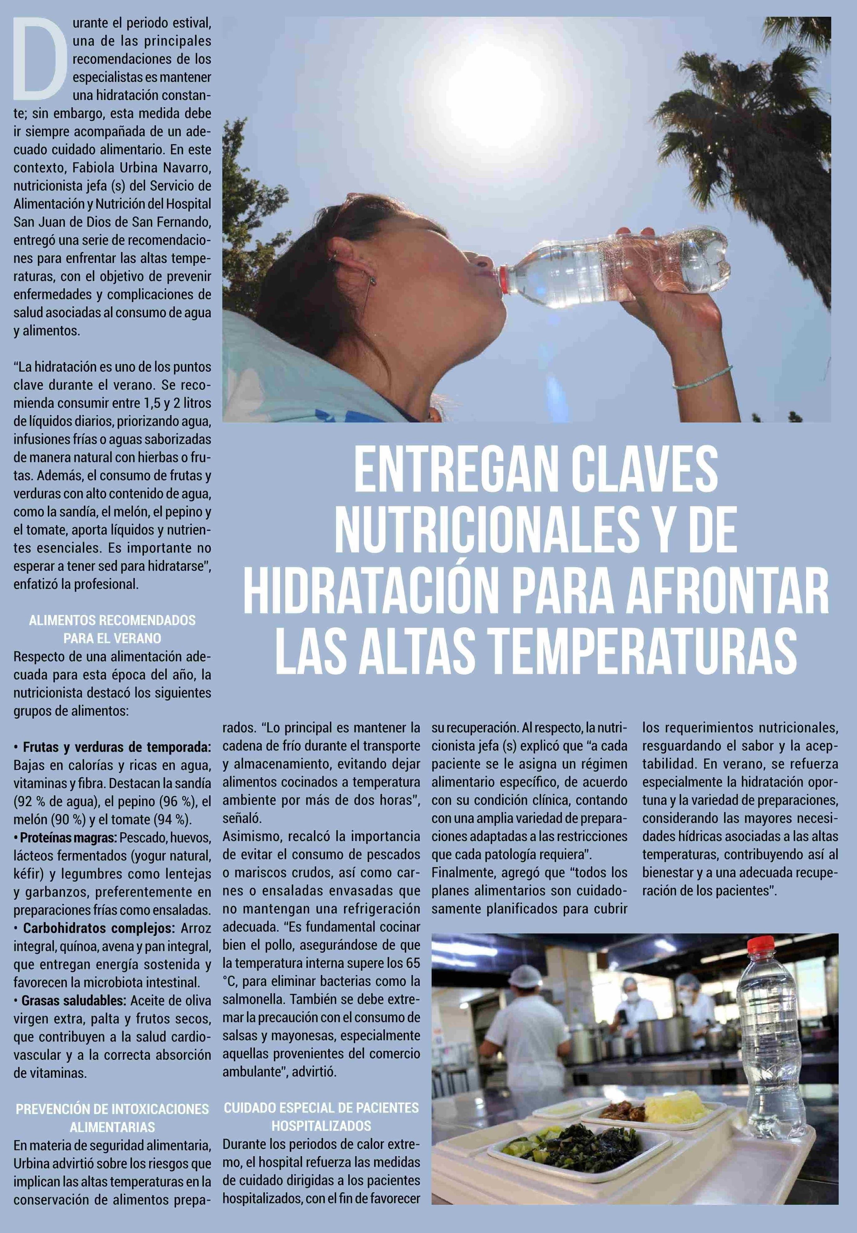 Título: ENTREGAN CLAVES NUTRICIONALES Y DE HIDRATACIÓN PARA AFRONTAR LAS ALTAS TEMPERATURAS