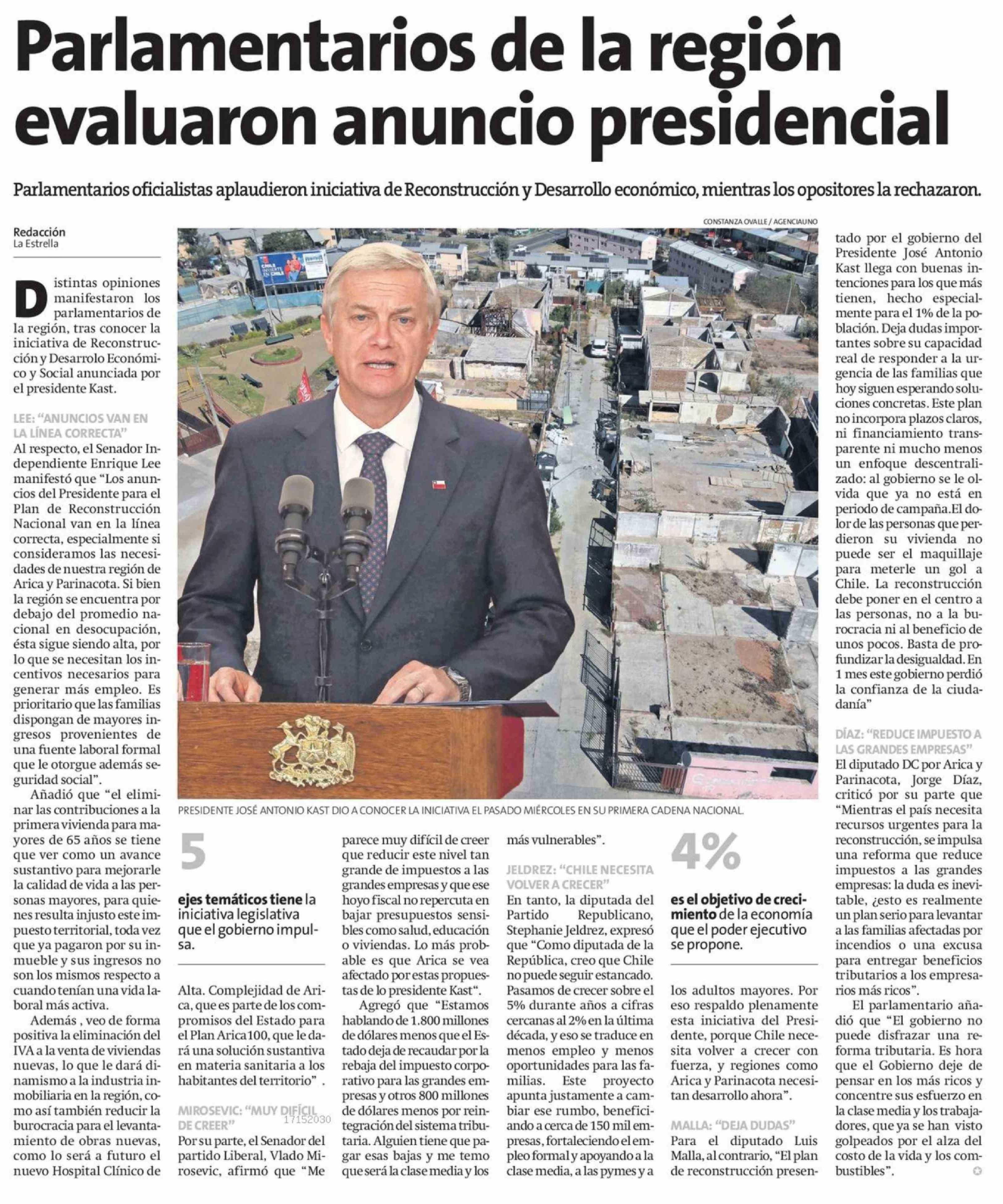 Parlamentarios de la región evaluaron anuncio presidencial 17-04-2026 La Estrella de Arica |