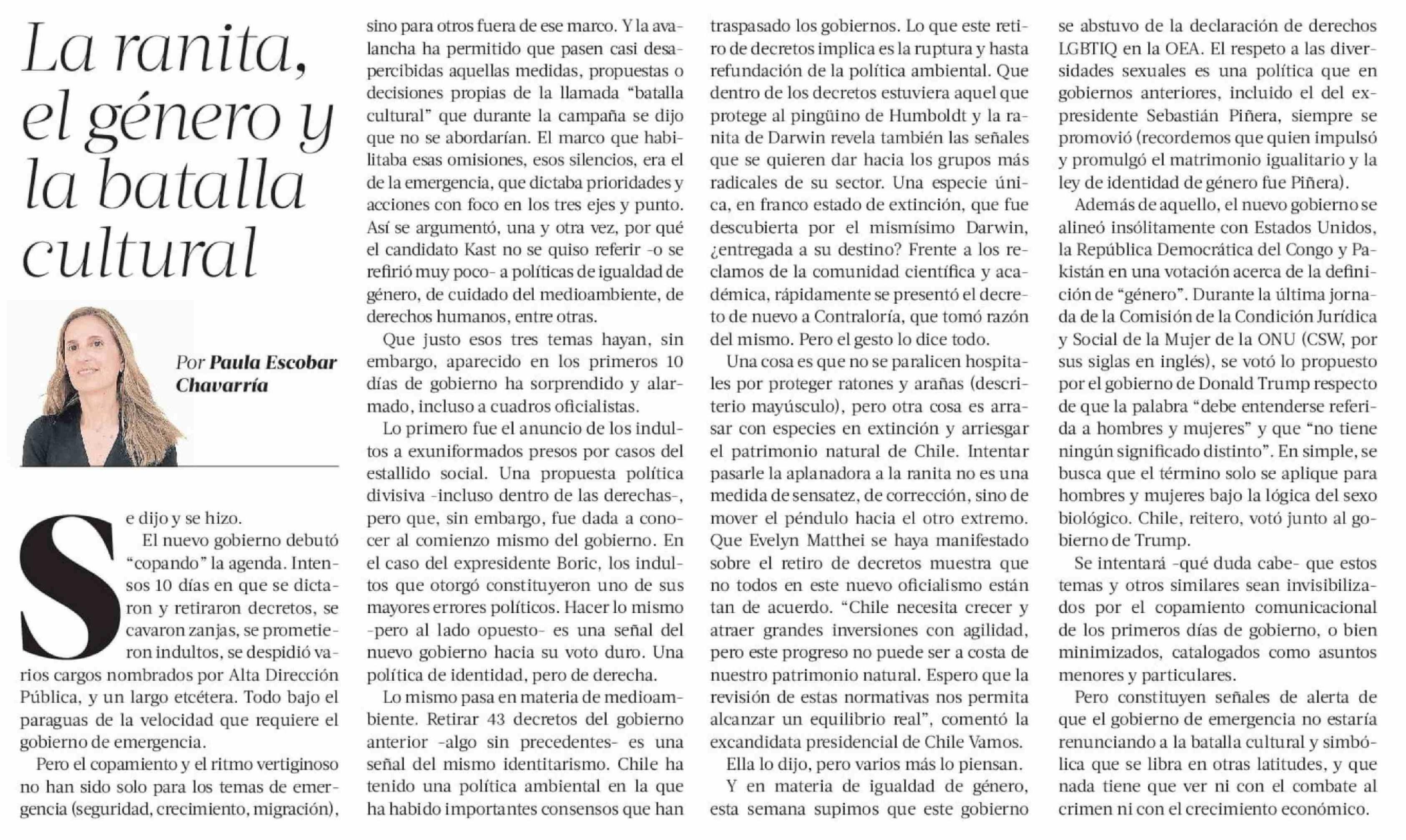 Título: Columnas de Opinión: La ranita, el género y la batalla cultural