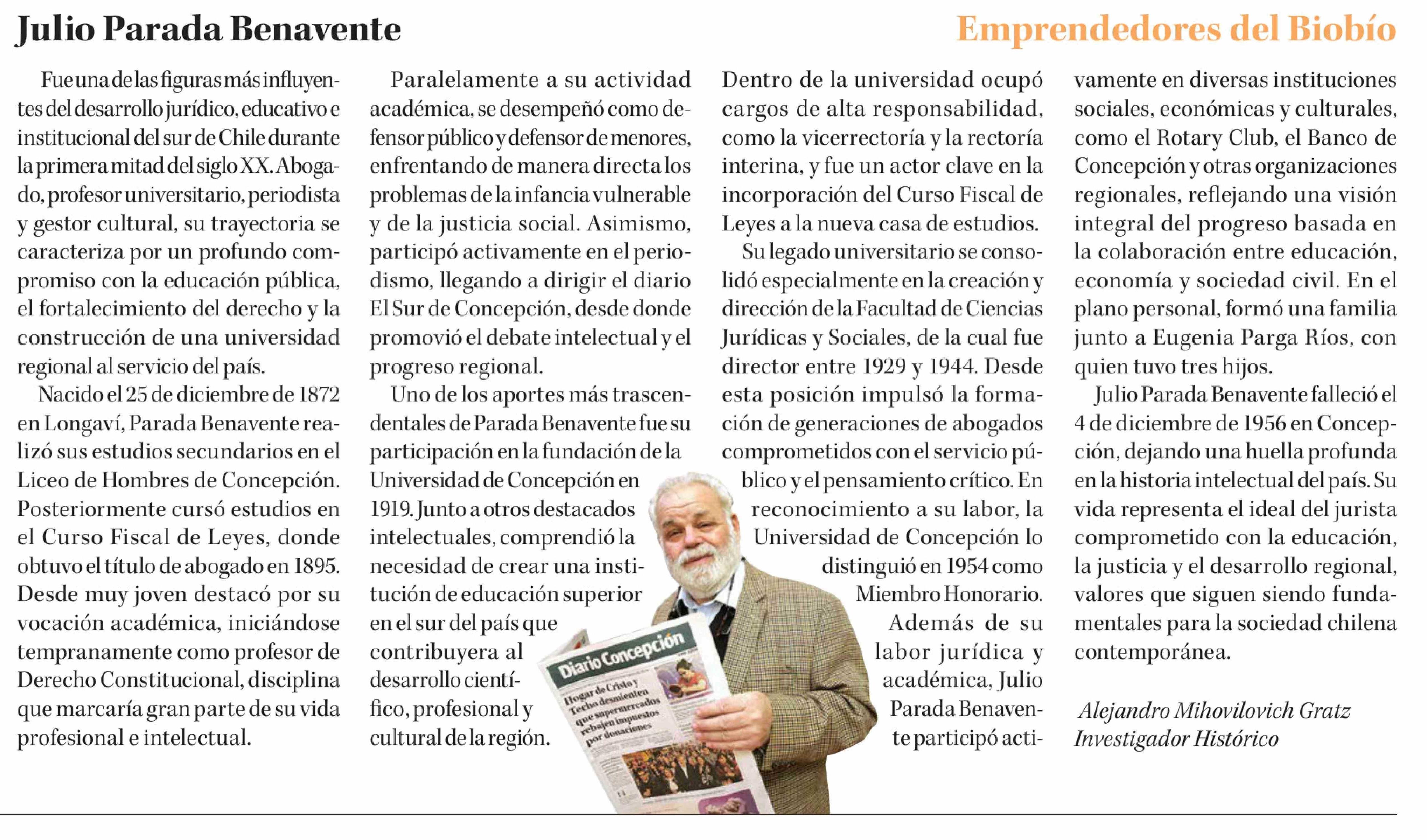 Columnas de Opinión: Julio Parada Benavente 01-02-2026 Diario Concepción |