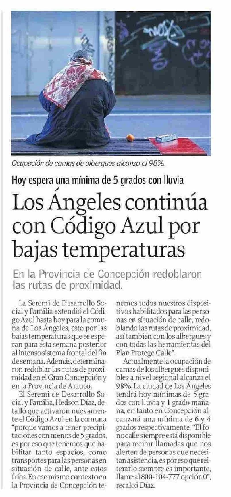 Los Angeles continúa con Código Azul por bajas temperaturas 17-06-2025 El Sur |