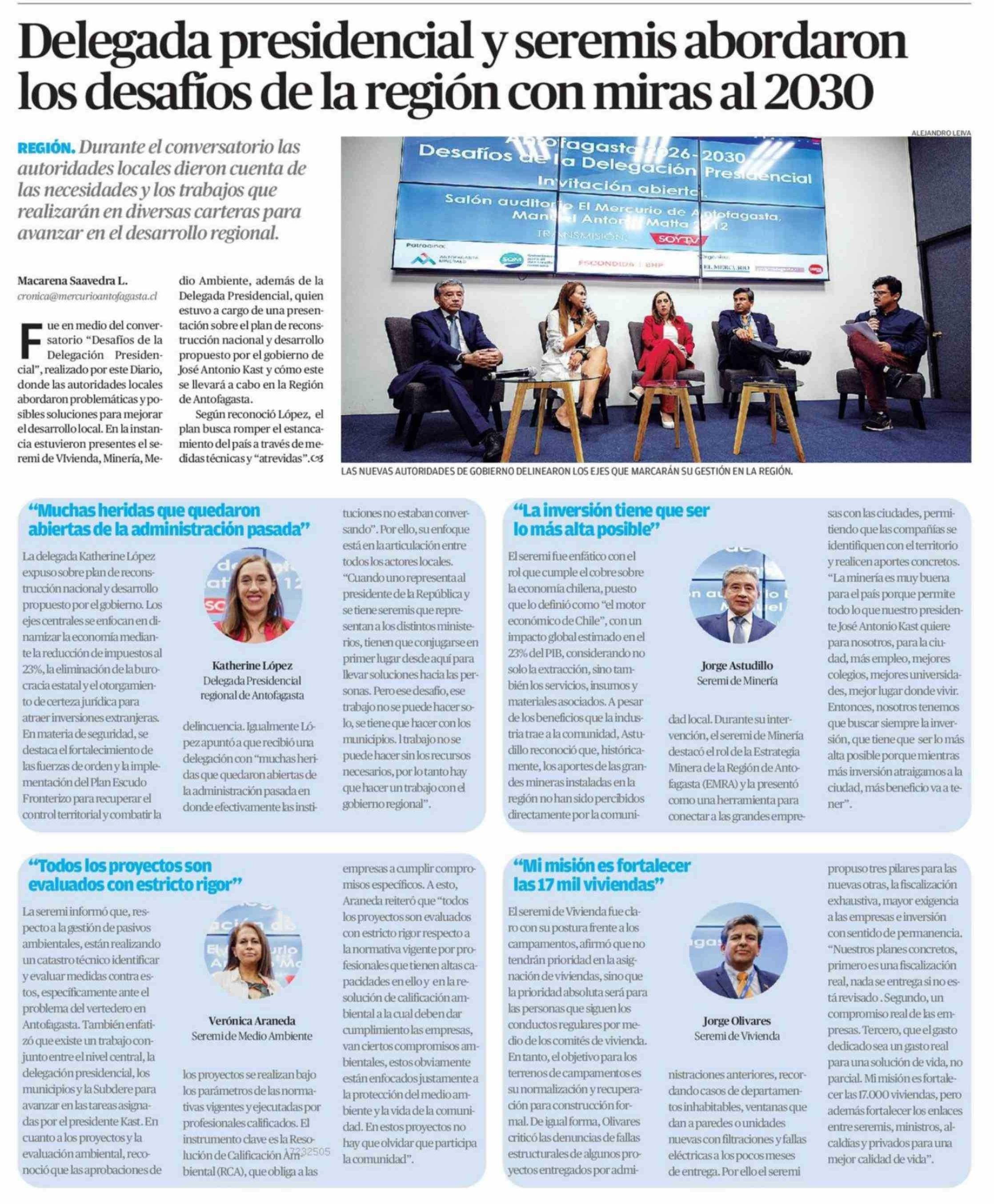 Delegada presidencial y seremis abordaron los desafíos de la región con miras al 2030 19-04-2026 El Mercurio de Antofagasta |