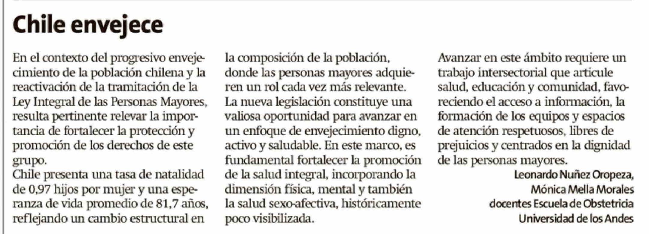 Cartas: Chile envejece 28-03-2026 El Líder |