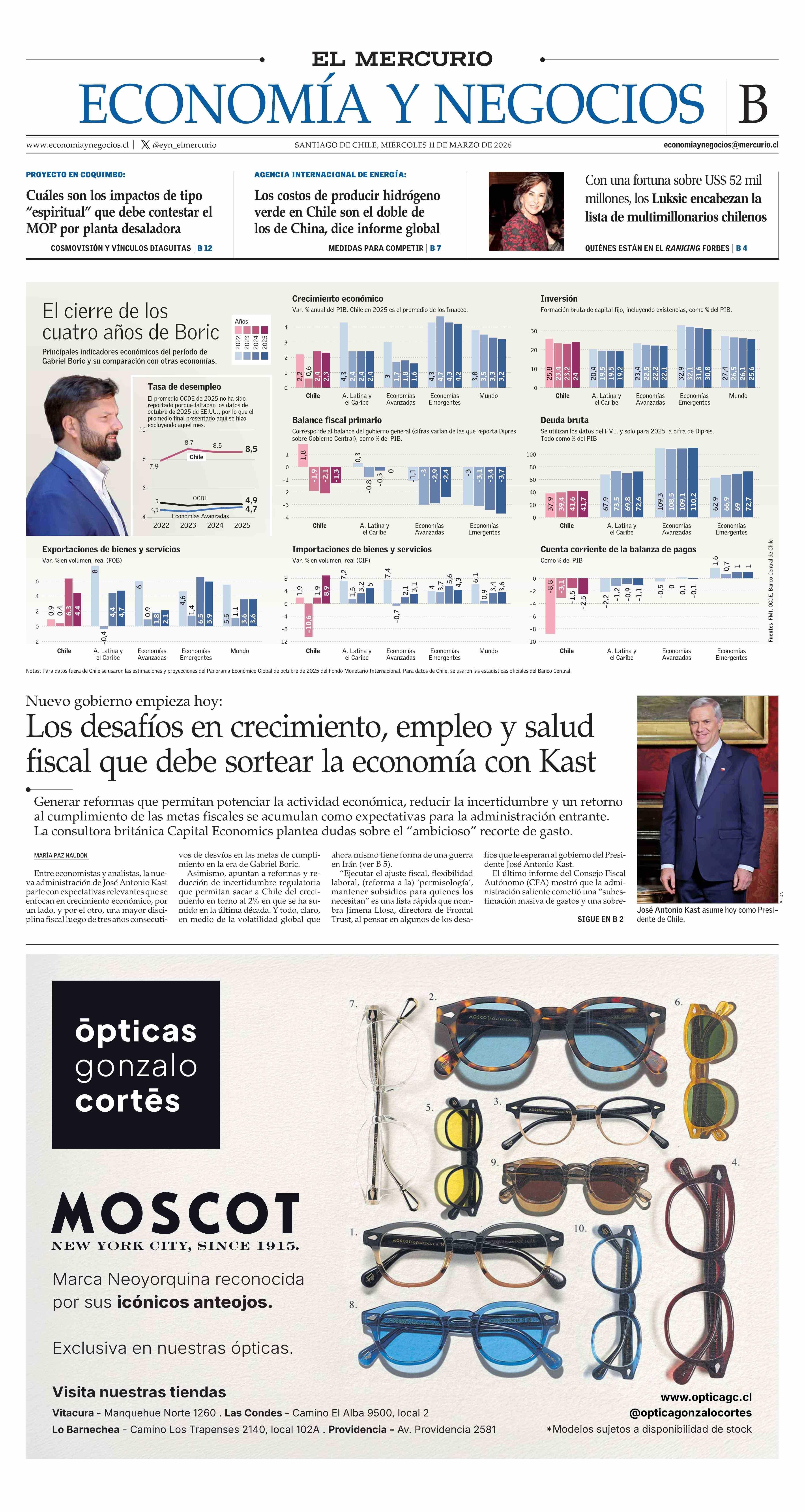 PORTADA EL MERCURIO (B) CHILE 11-03-2026 El Mercurio |