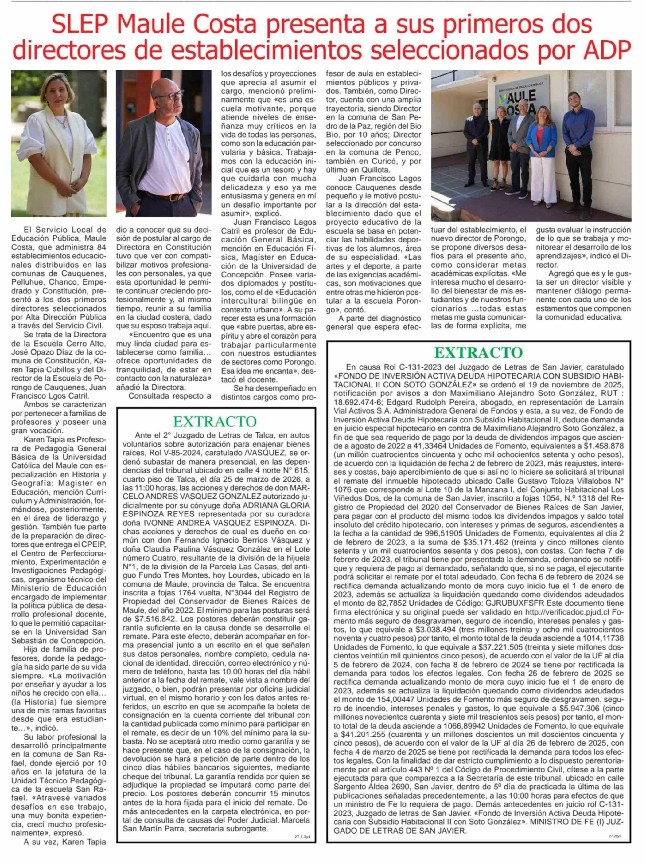 SLEP Maule Costa presenta a sus primeros dos directores de establecimientos seleccionados por ADP 03-03-2026 Maule Hoy |