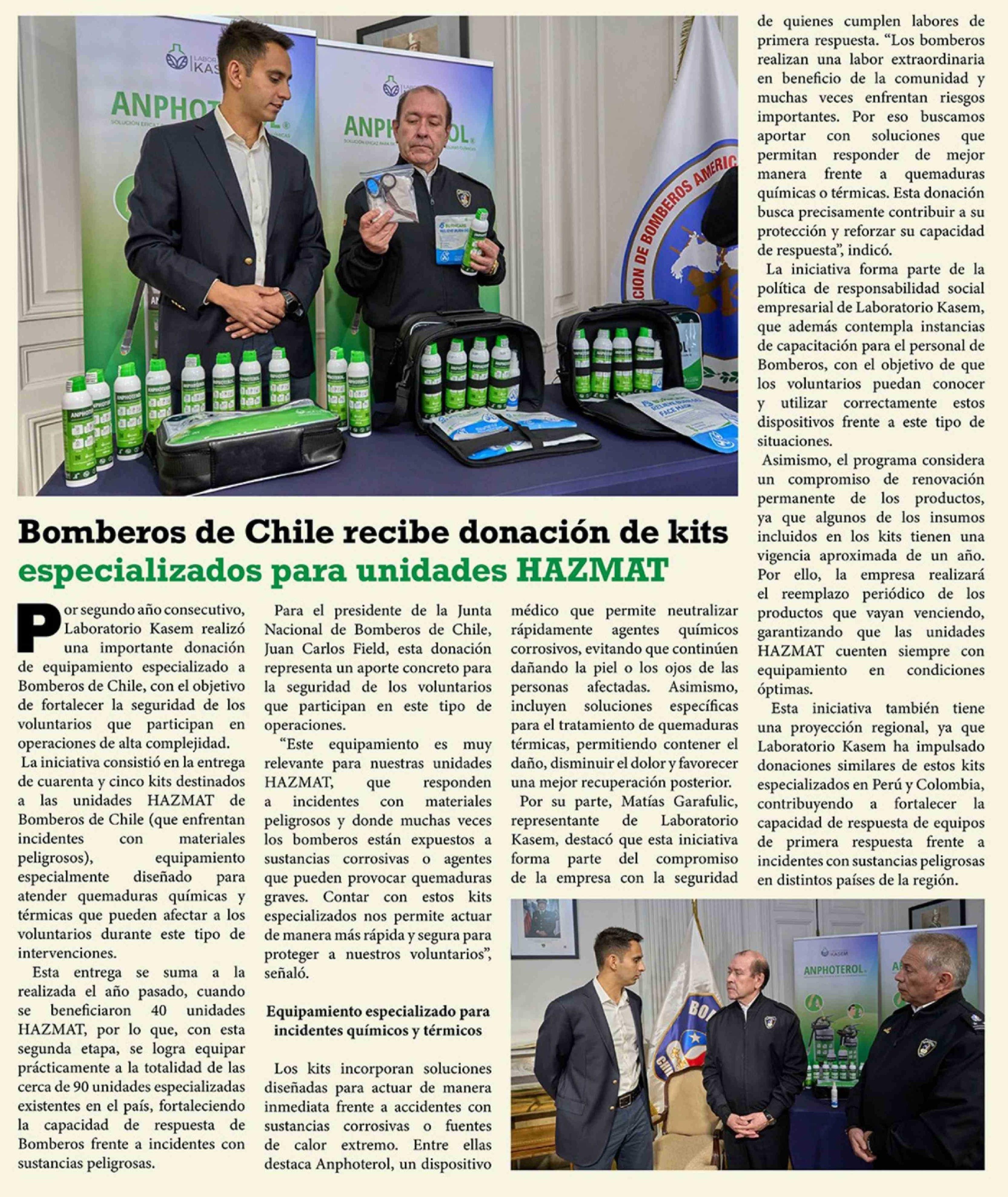 Título: Bomberos de Chile recibe donación de kits especializados para unidades HAZMAT