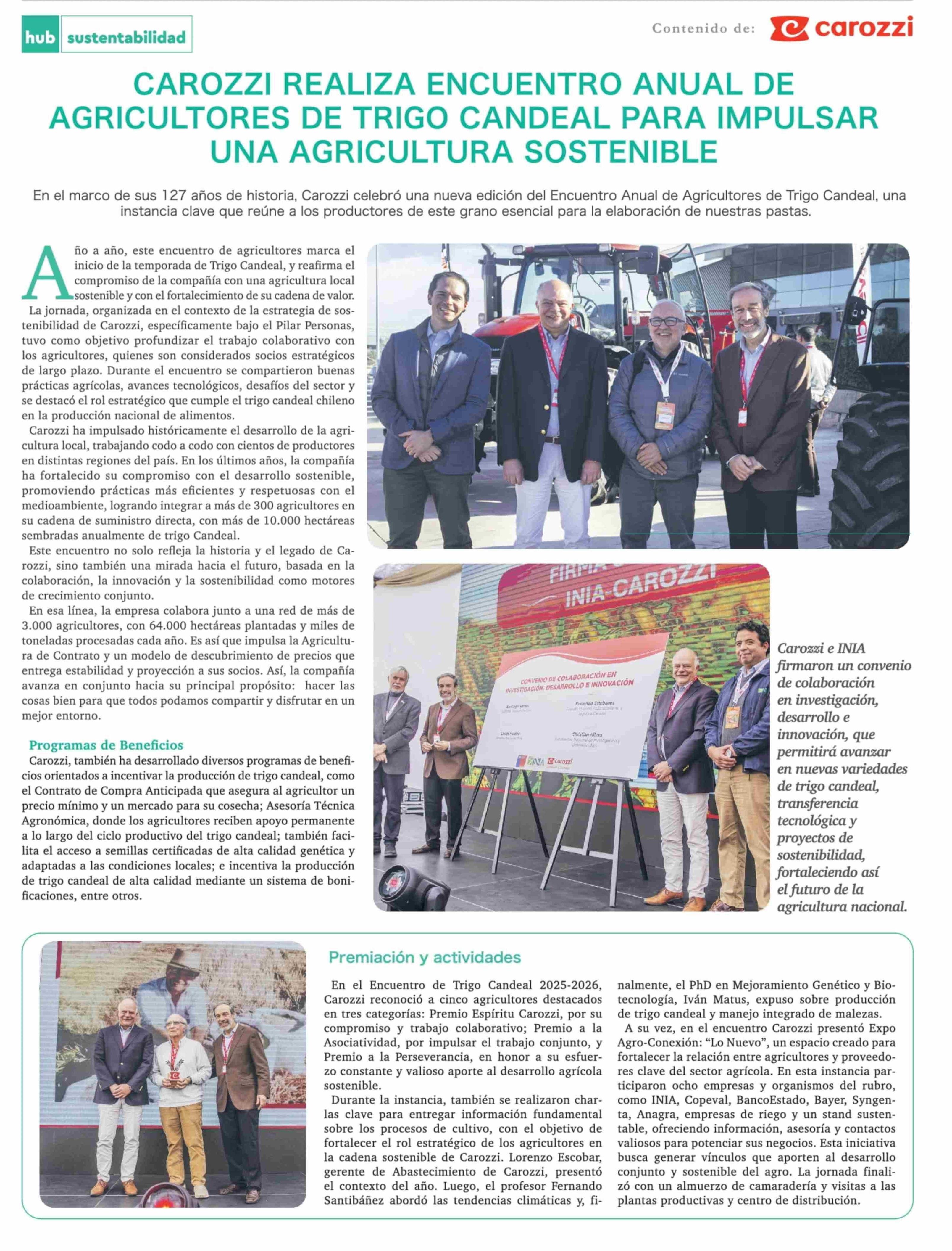 CAROZZI REALIZA ENCUENTRO ANUAL DE AGRICULTORES DE TRIGO CANDEAL PARA IMPULSAR UNA AGRICULTURA SOSTENIBLE 07-06-2025 La Tercera |