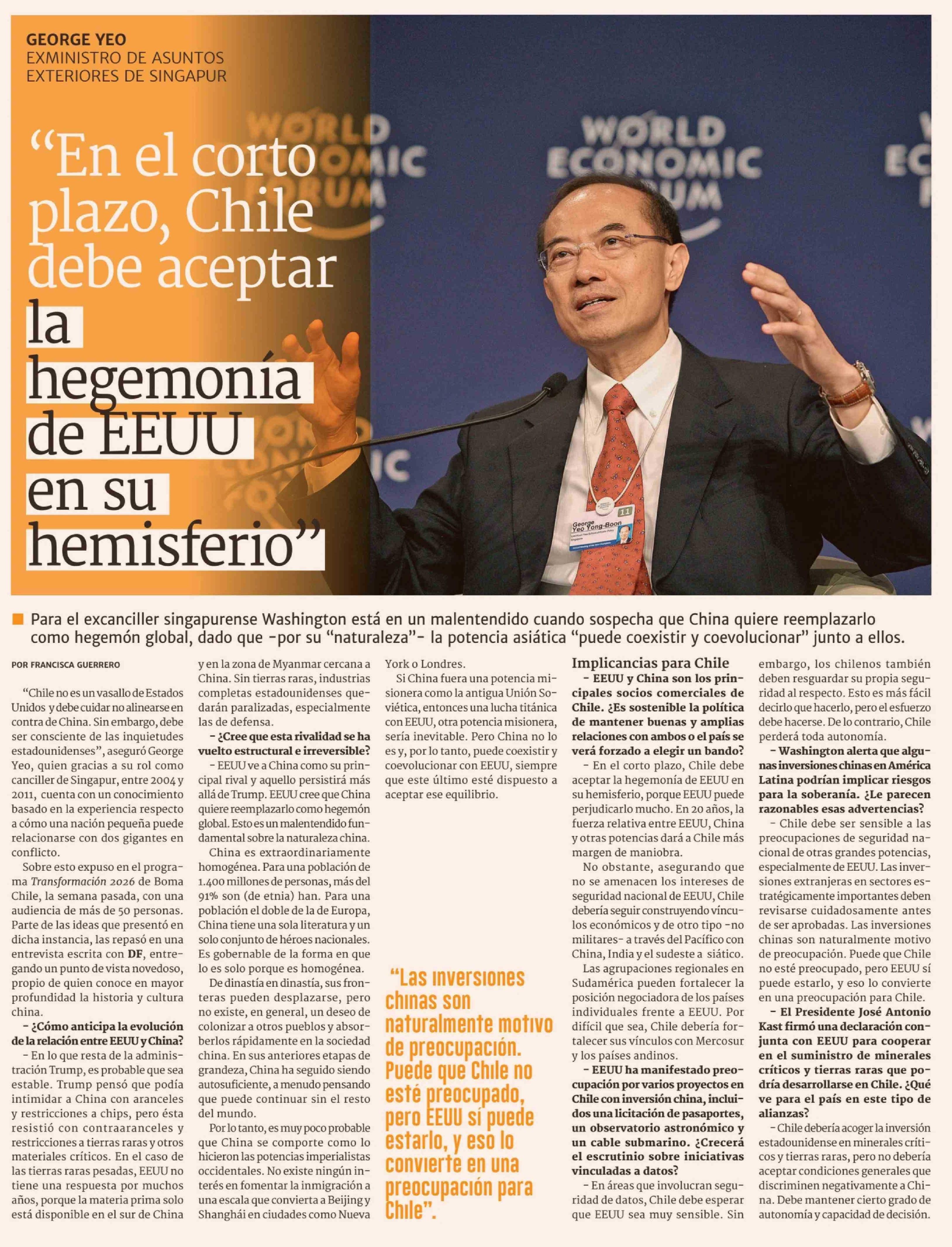 WORLD "En el cortoOMIc plazo, Chile debe aceptar la hegemonia de EEUU en su hemisferio 23-03-2026 Diario Financiero |