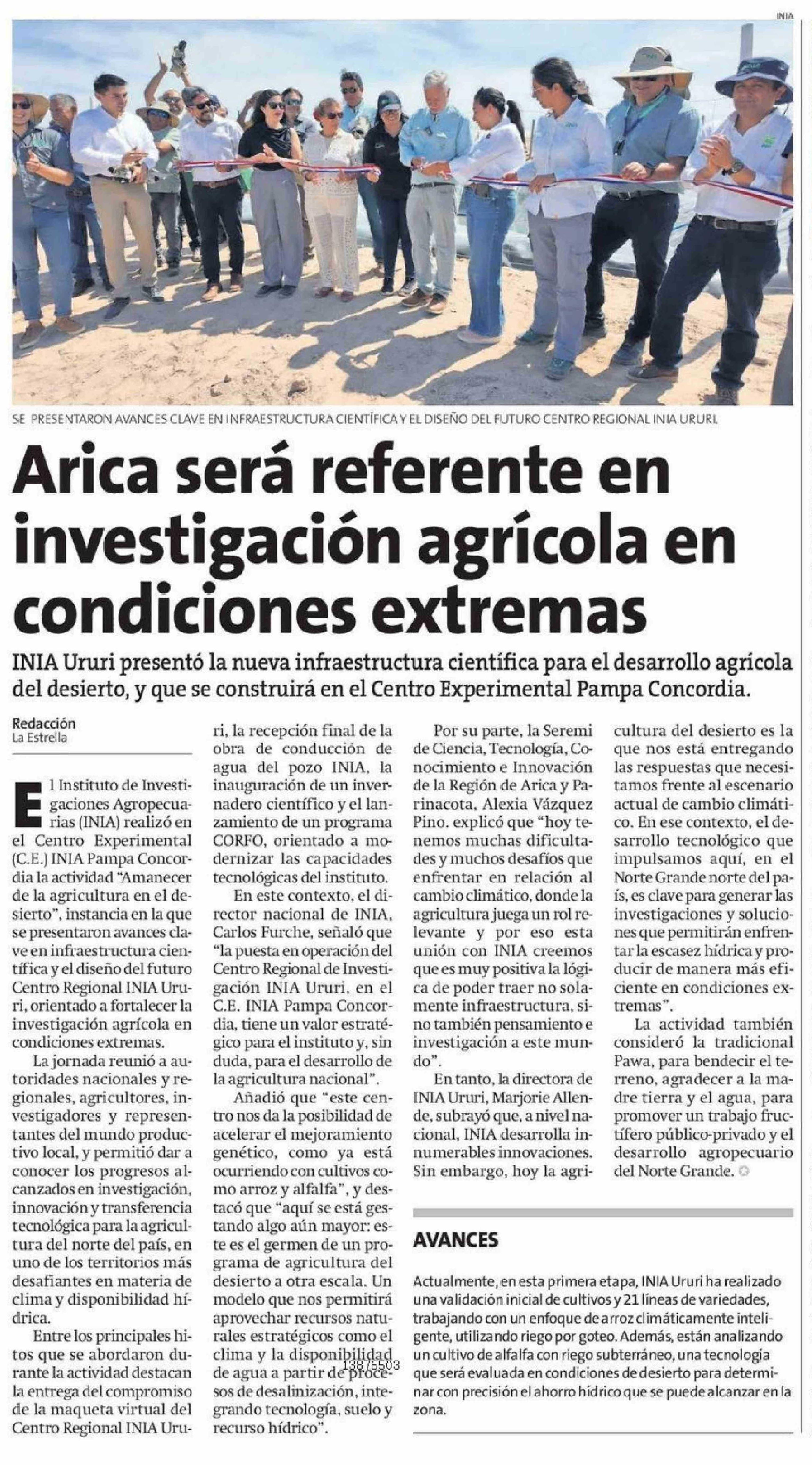 Título: Arica será referente en investigación agrícola en condiciones extremas