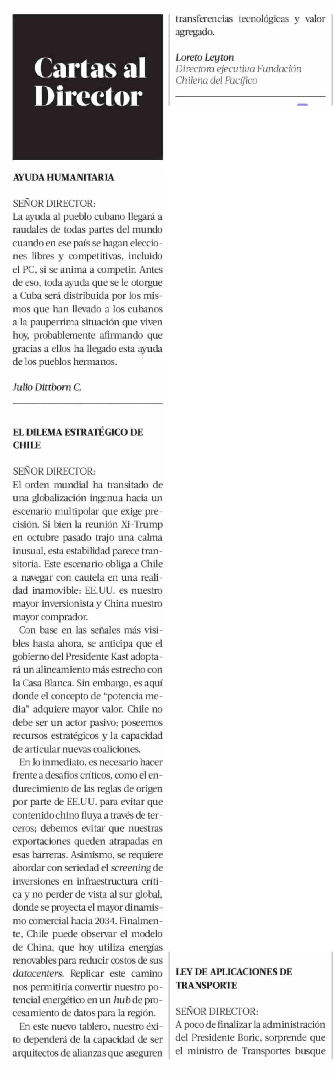 CARTAS: EL DILEMA ESTRATÉGICO DE CHILE