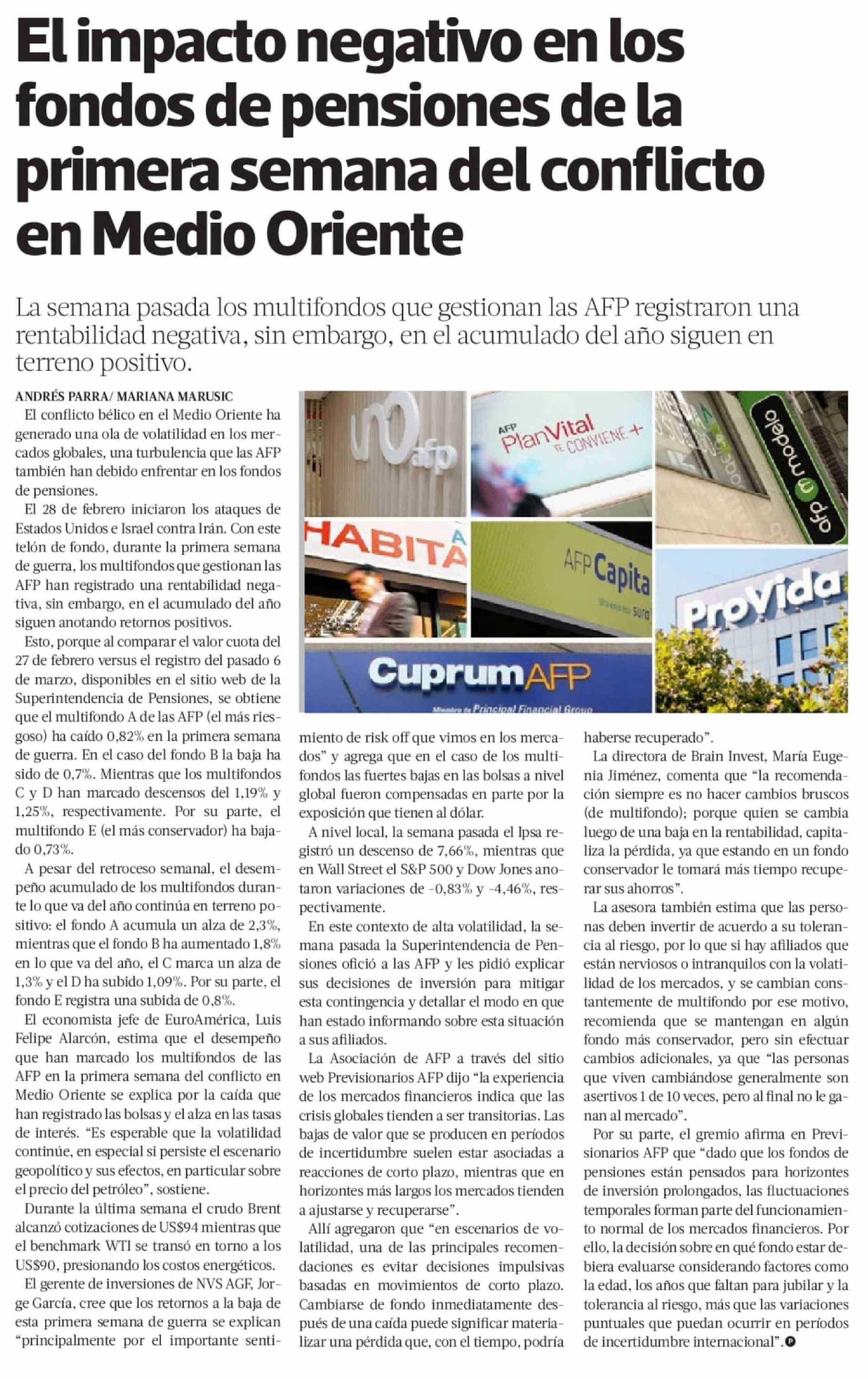 El impacto negativo en los fondos de pensiones de la primera semana del conflicto en Medio Oriente 11-03-2026 La Tercera |