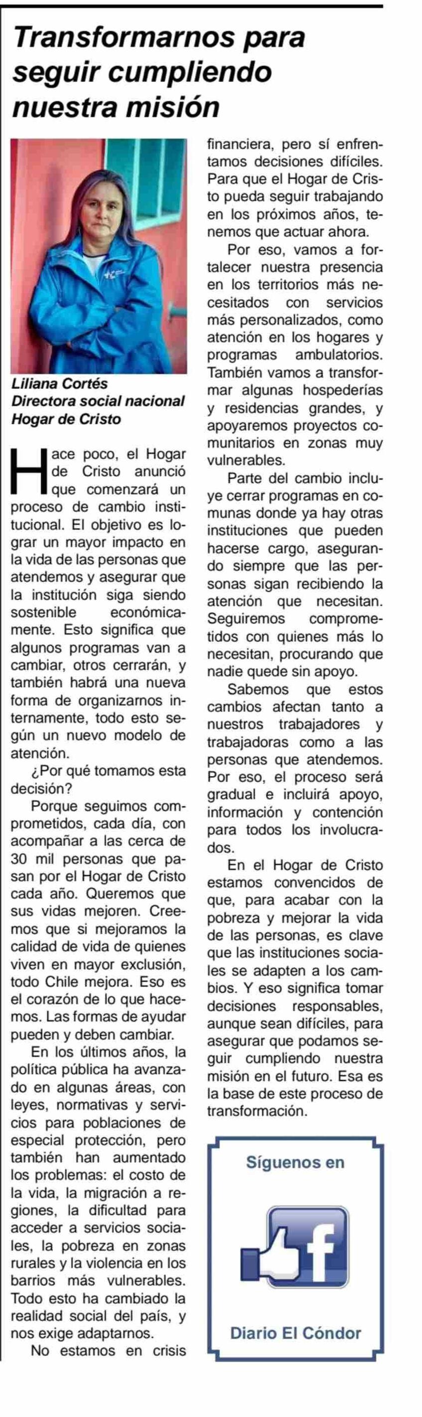 COLUMNAS DE OPINIÓN: Transformarnos para seguir cumpliendo nuestra misión 03-06-2025 Diario El Cóndor |