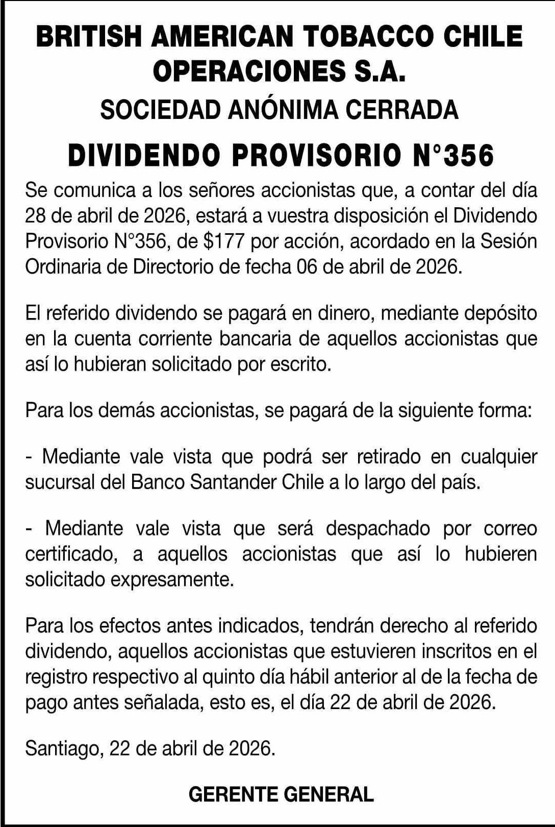 Extractos: BRITISH AMERICAN TOBACCO CHILE