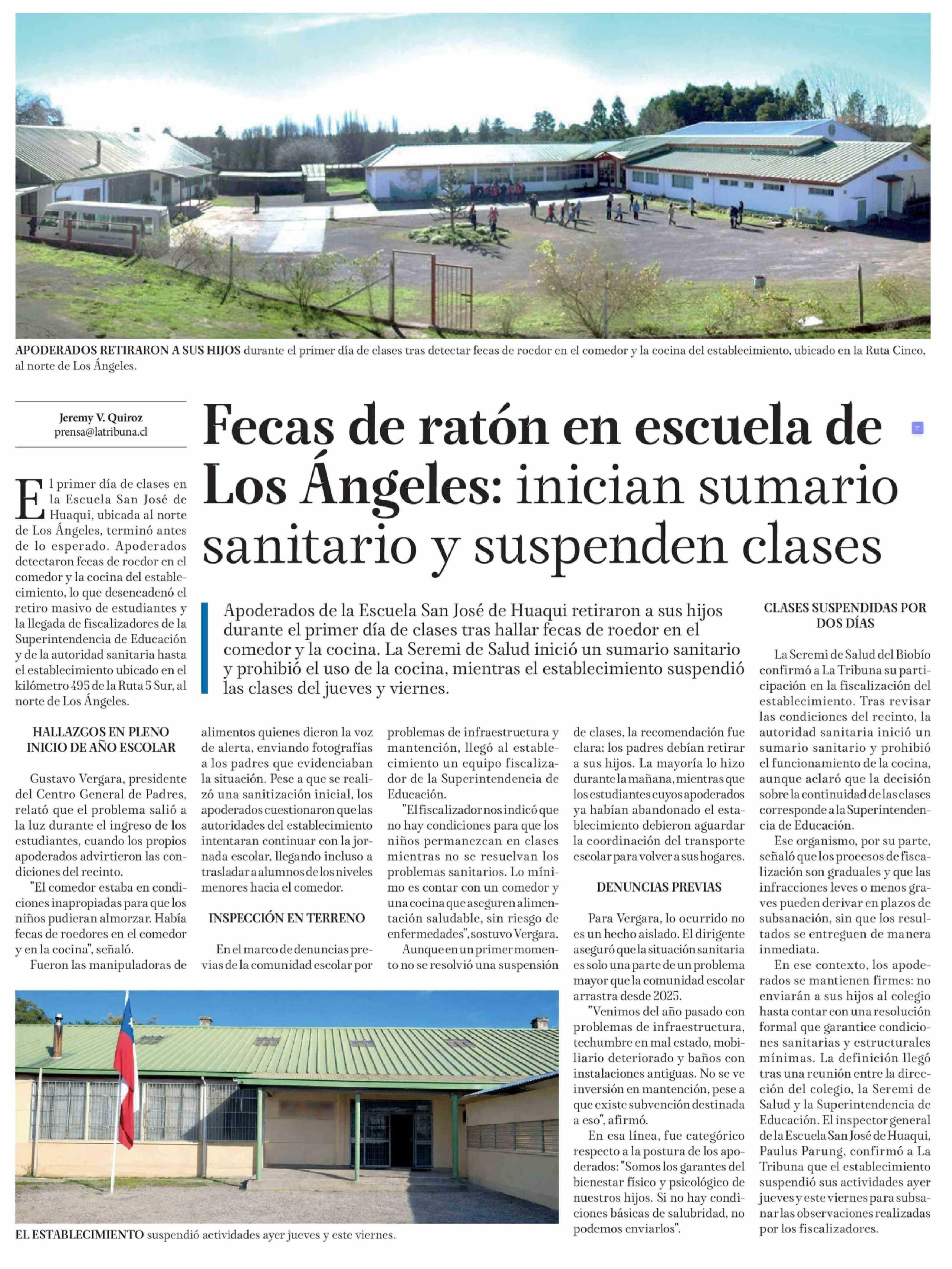 Título: Fecas de ratón en escuela de Los Ángeles: inician sumario sanitario y suspenden clases