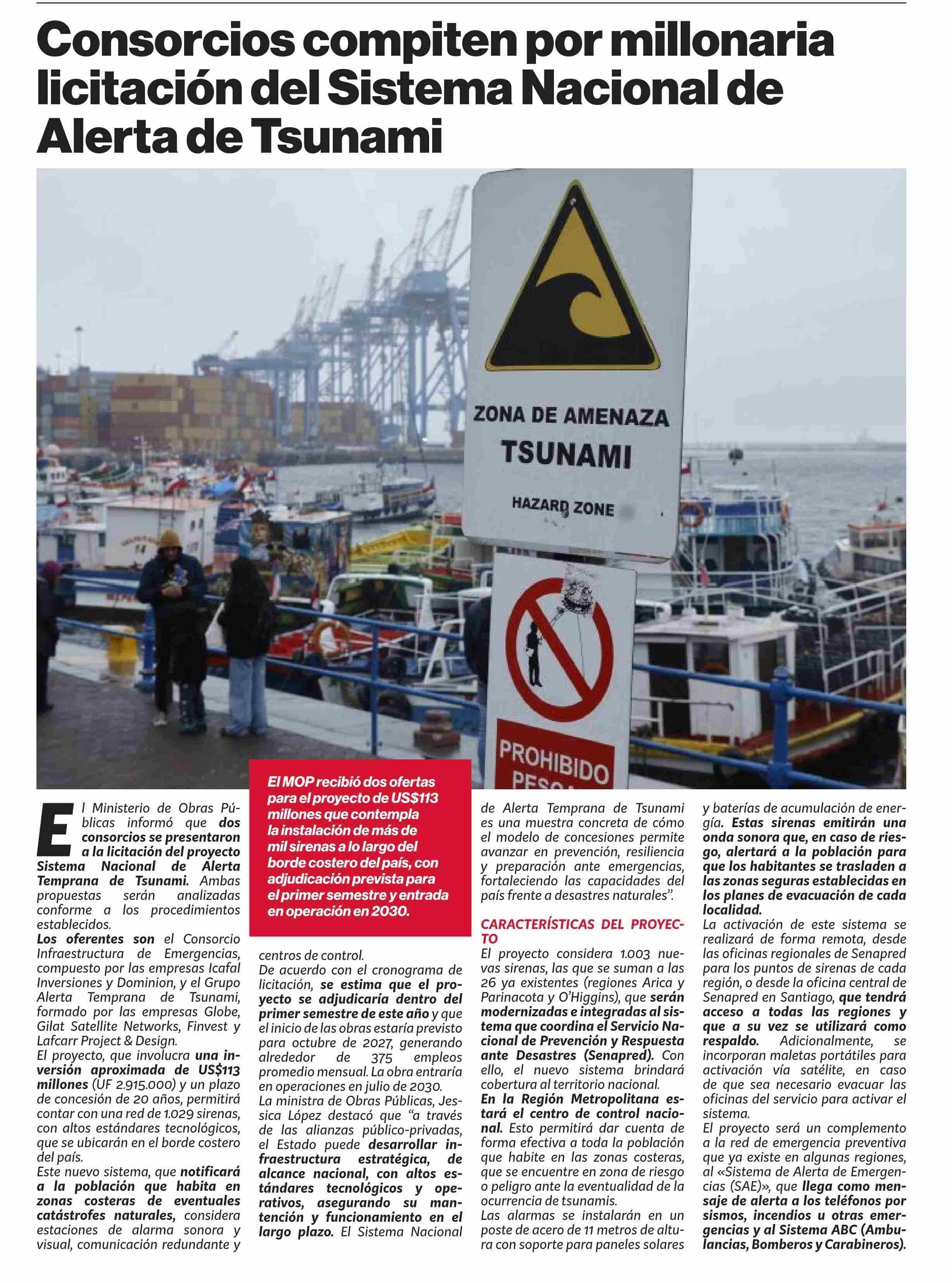 Título: Consorcios compiten por millonaria licitación del Sistema Nacional de Alerta de Tsunami