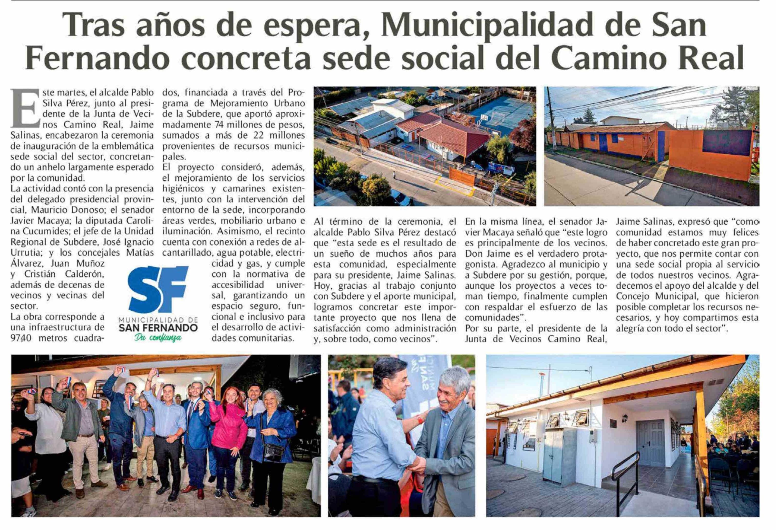 Título: Tras años de espera, Municipalidad de San Fernando concreta sede social del Camino Real