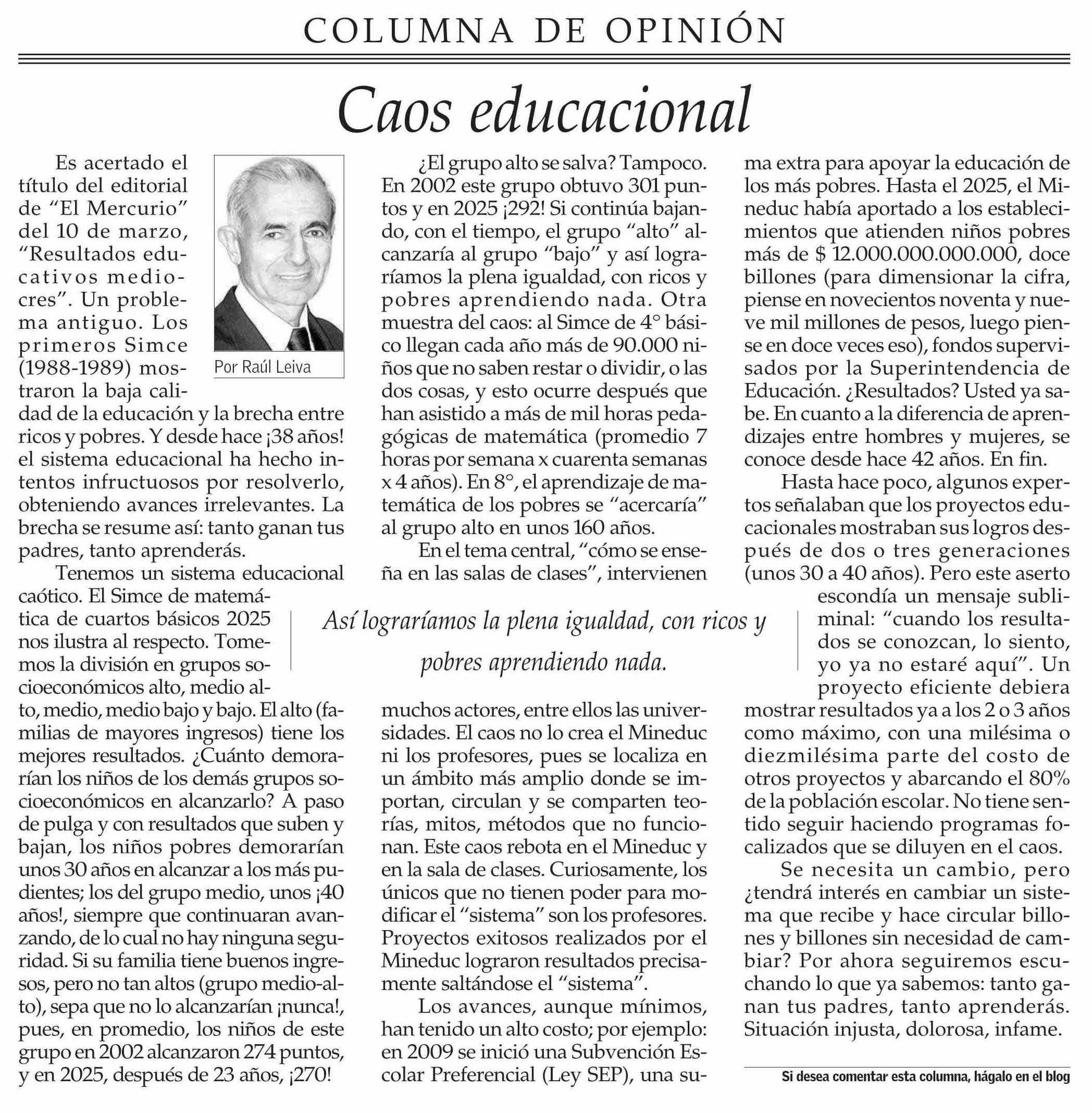 Columnas de Opinión: Caos educacional