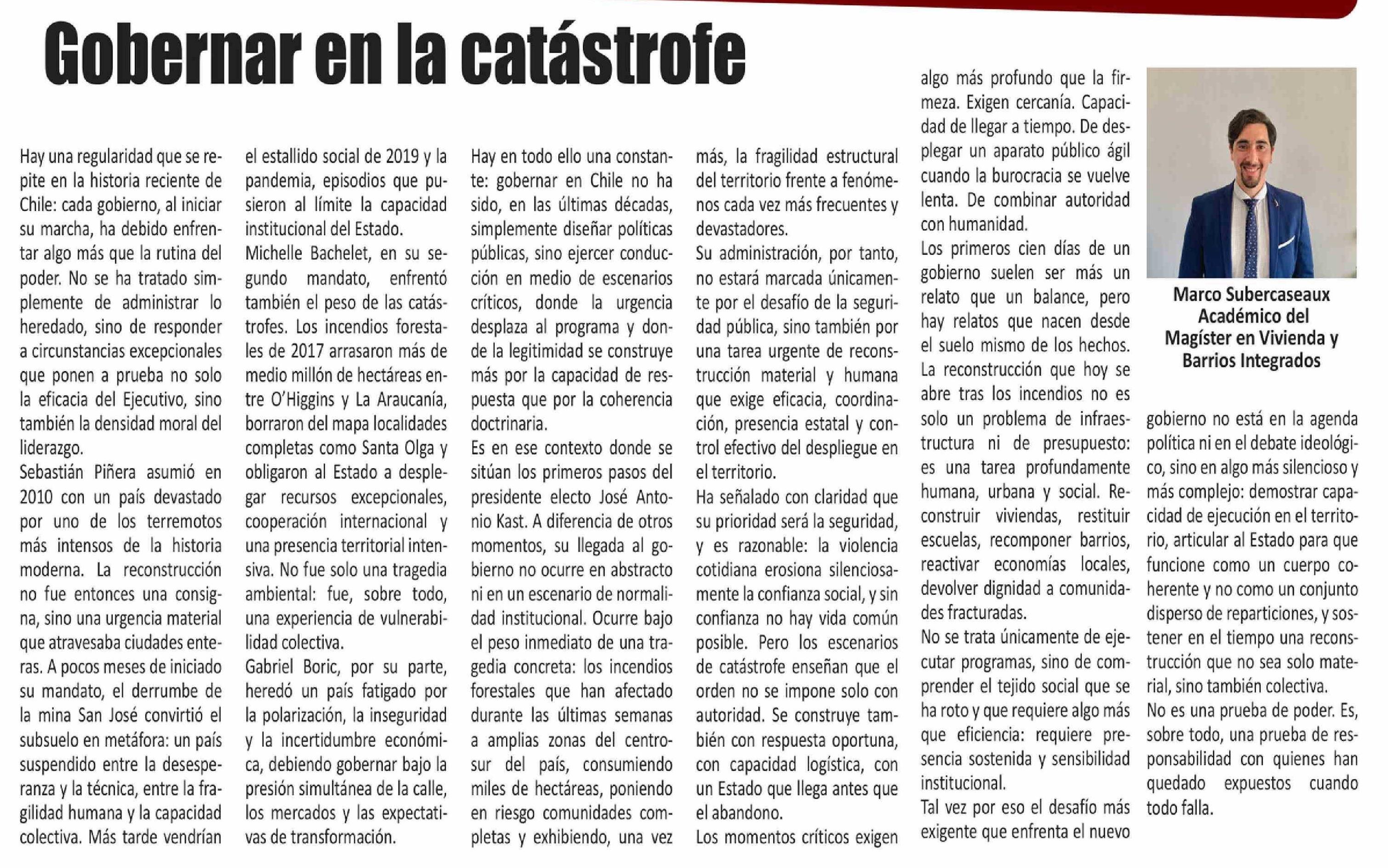 Título: Columnas de Opinión: Gobernar en la catástrofe