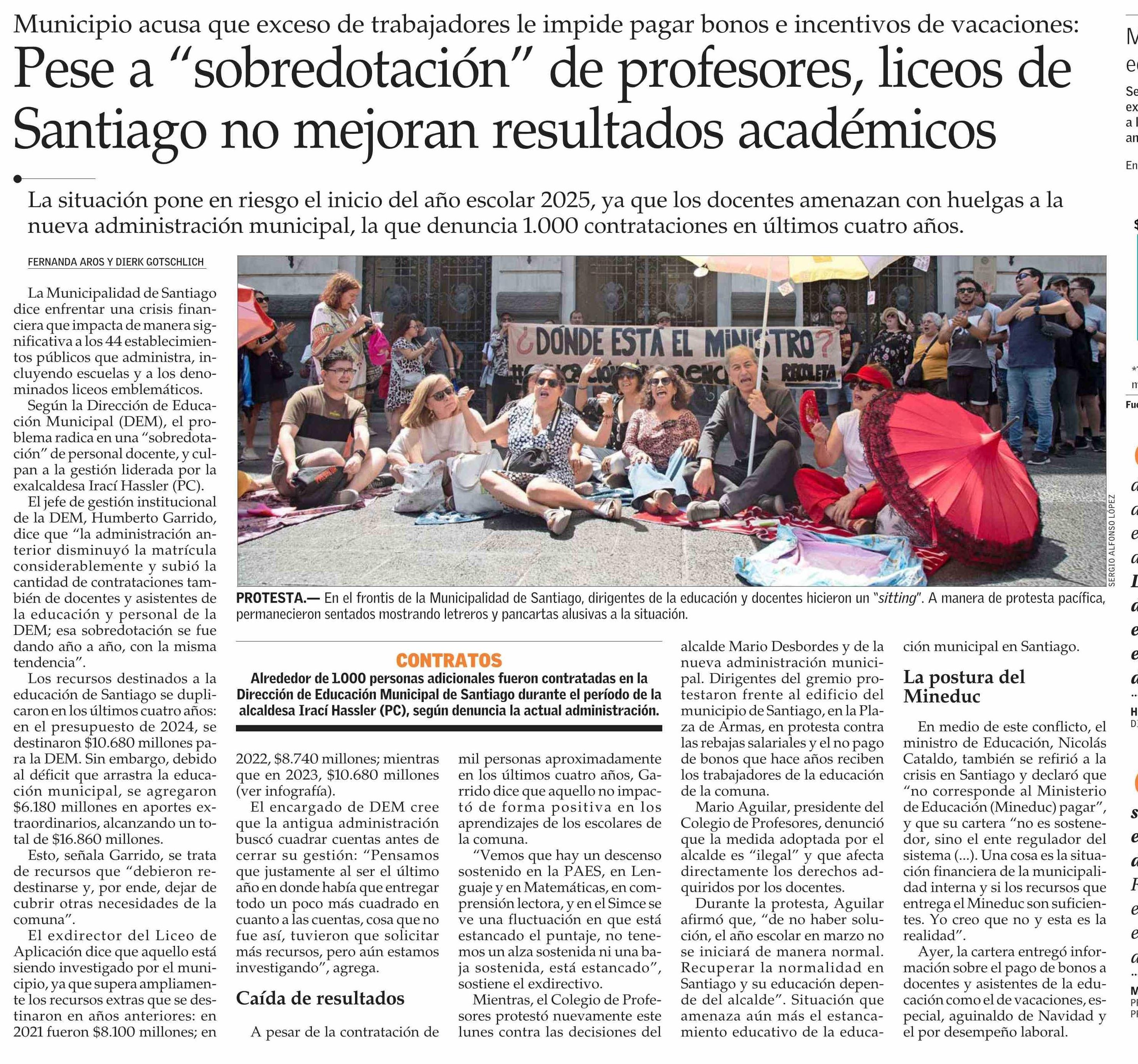 Pese a “sobredotación” de profesores, liceos de Santiago no mejoran resultados académicos 04-02-2025 El Mercurio |