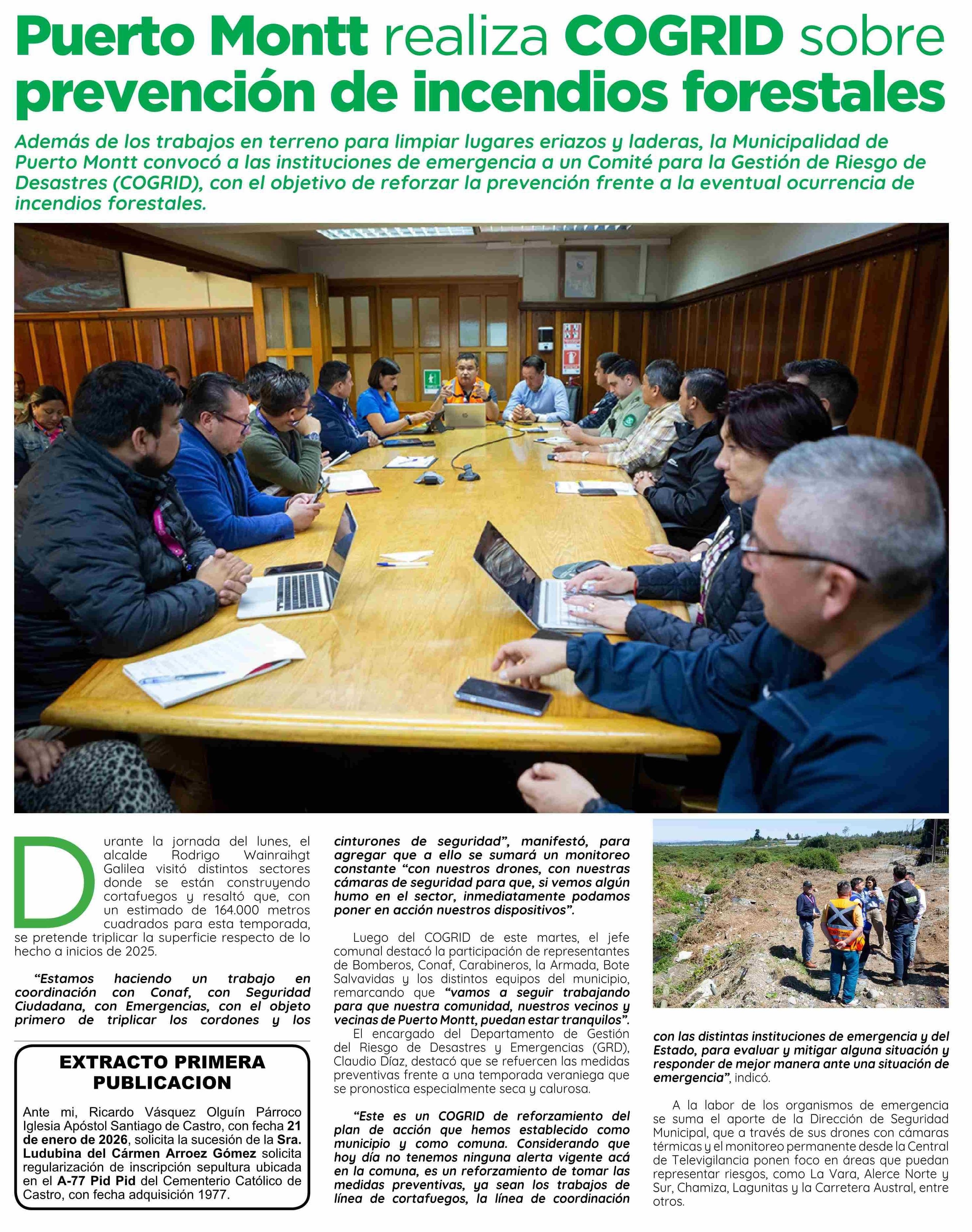 Puerto Montt realiza COGRID sobre prevención de incendios forestales 21-01-2026 El Insular |