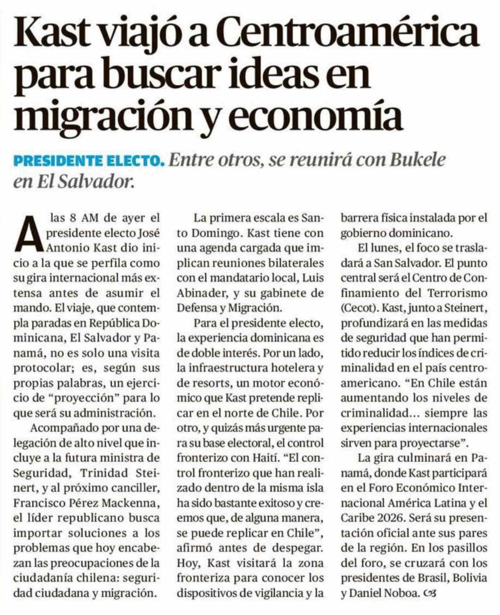 Kast viajó a Centroamérica para buscar ideas en migración y economía 25-01-2026 Crónica de Chillán |