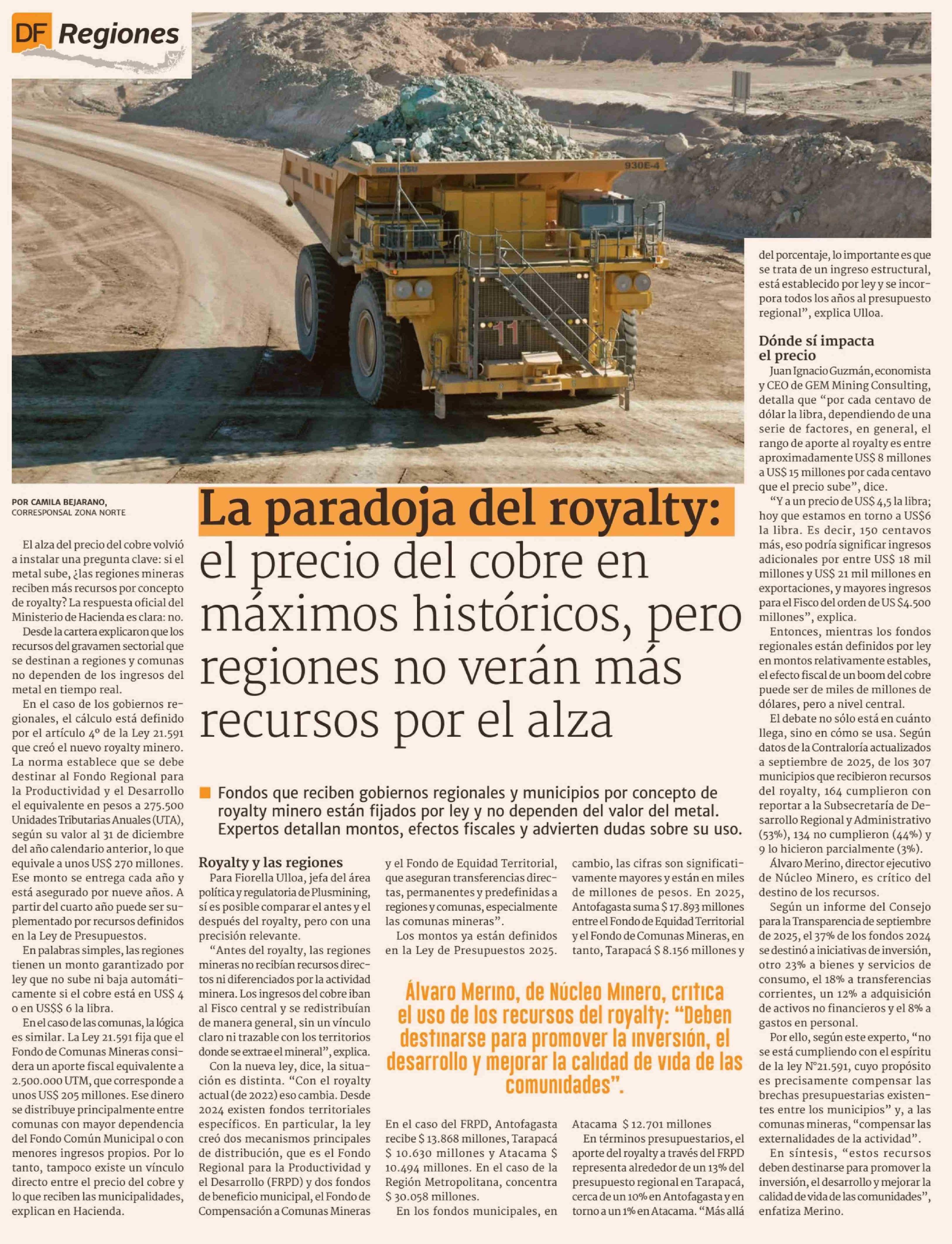 La paradoja del royalty: el precio del cobre en máximos históricos, pero regiones no verán más recursos por el alza 13-02-2026 Diario Financiero |