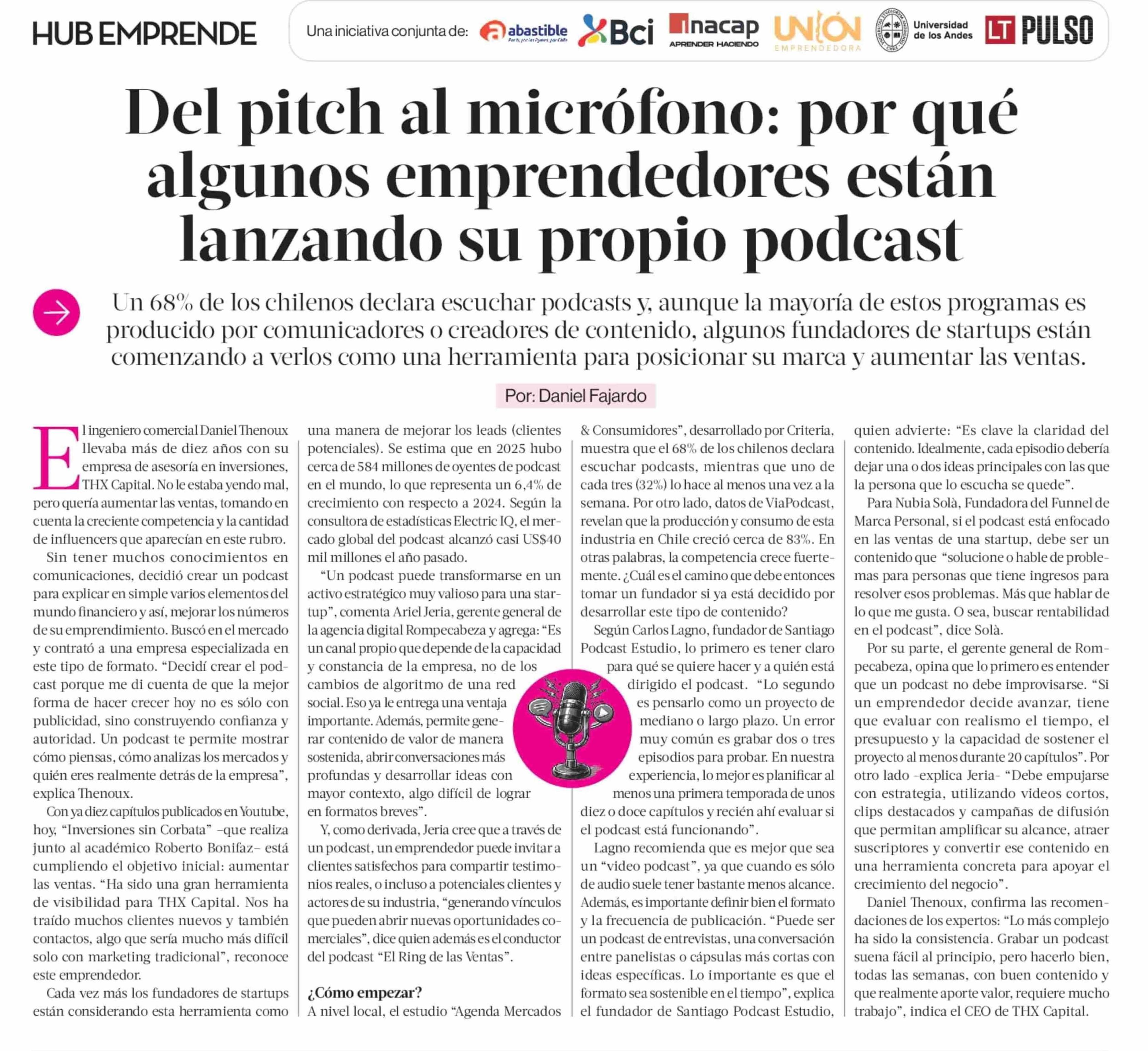 Del pitch al micrófono: por qué algunos emprendedores están lanzando su propio podcast 15-03-2026 La Tercera |