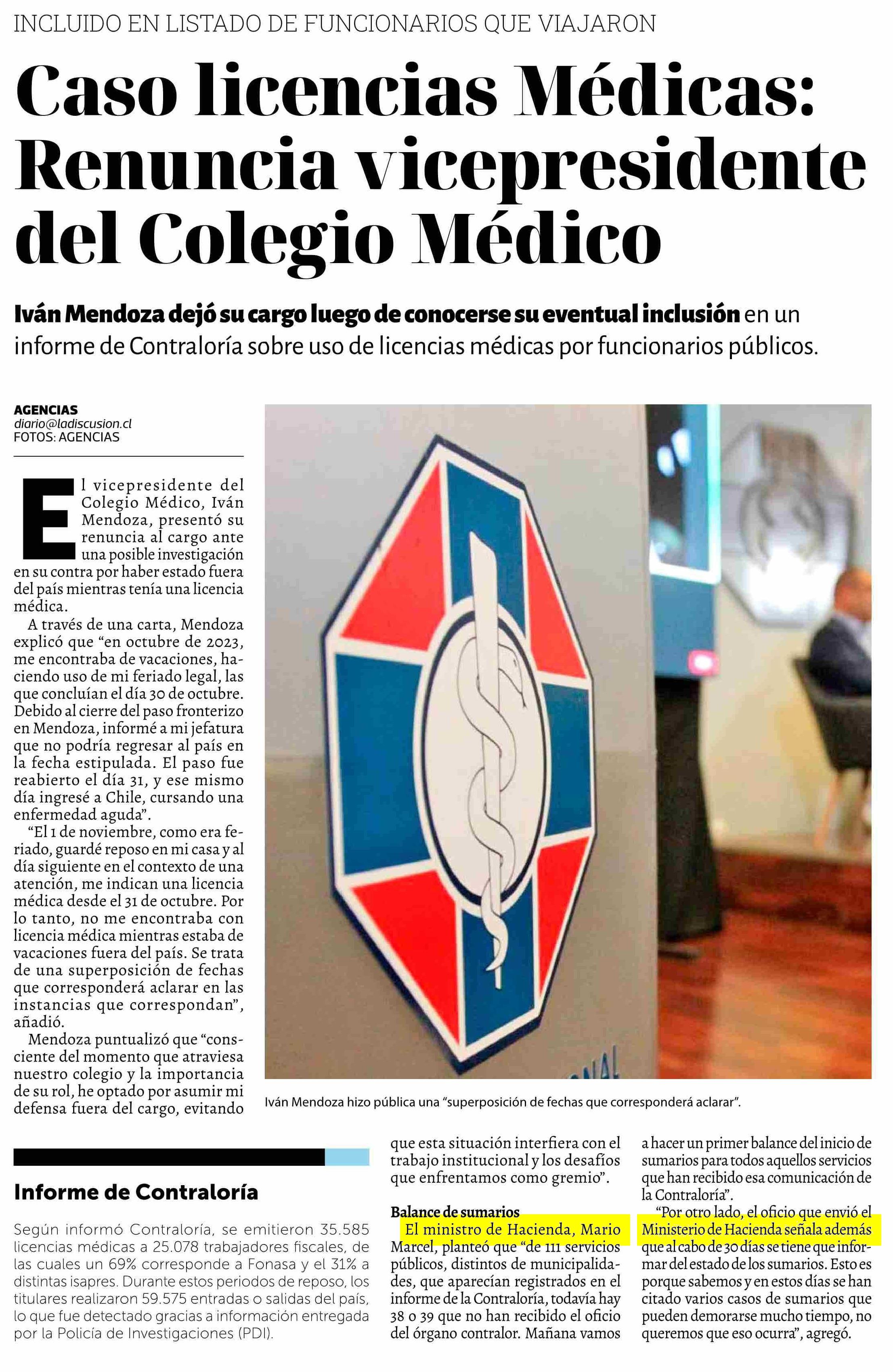 Título: Caso licencias Médicas: Renuncia vicepresidente del Colegio Médico