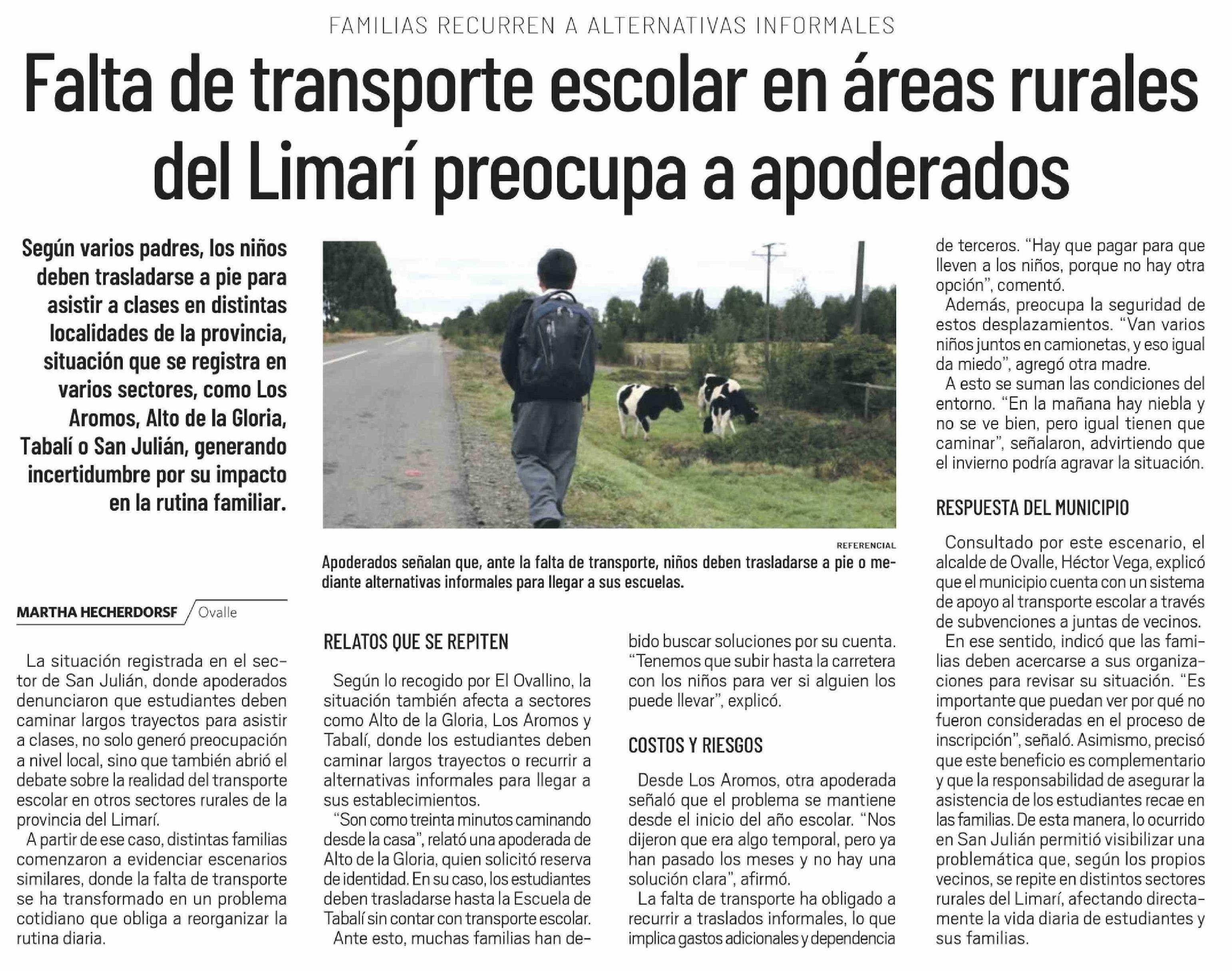 Falta de transporte escolar en áreas rurales del Limarí preocupa a apoderados 09-04-2026 El Día |