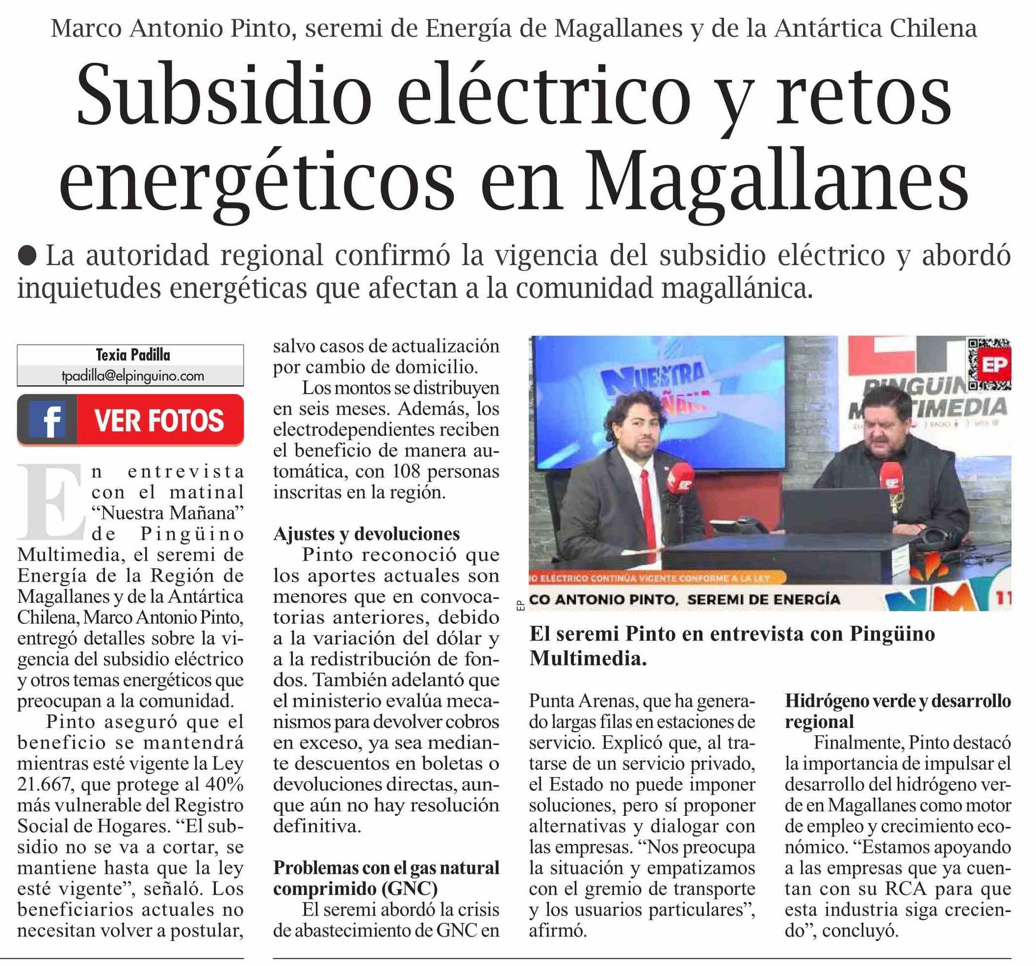 Subsidio eléctrico y retos energéticos en Magallanes 25-04-2026 El Pingüino |