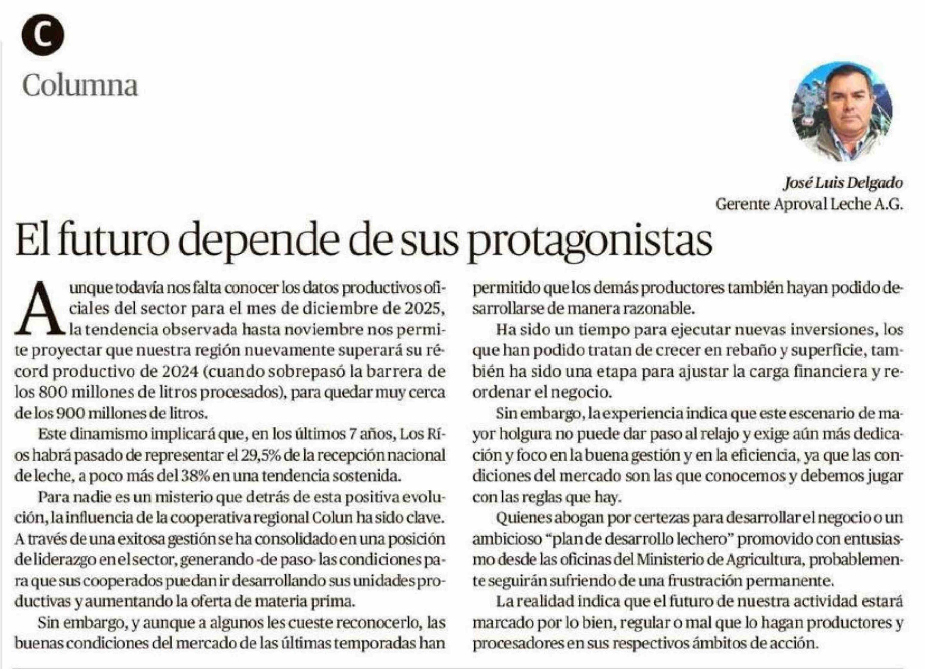 Columnas de Opinión: El futuro depende de sus protagonistas 01-02-2026 Diario Austral Región de Los Ríos |