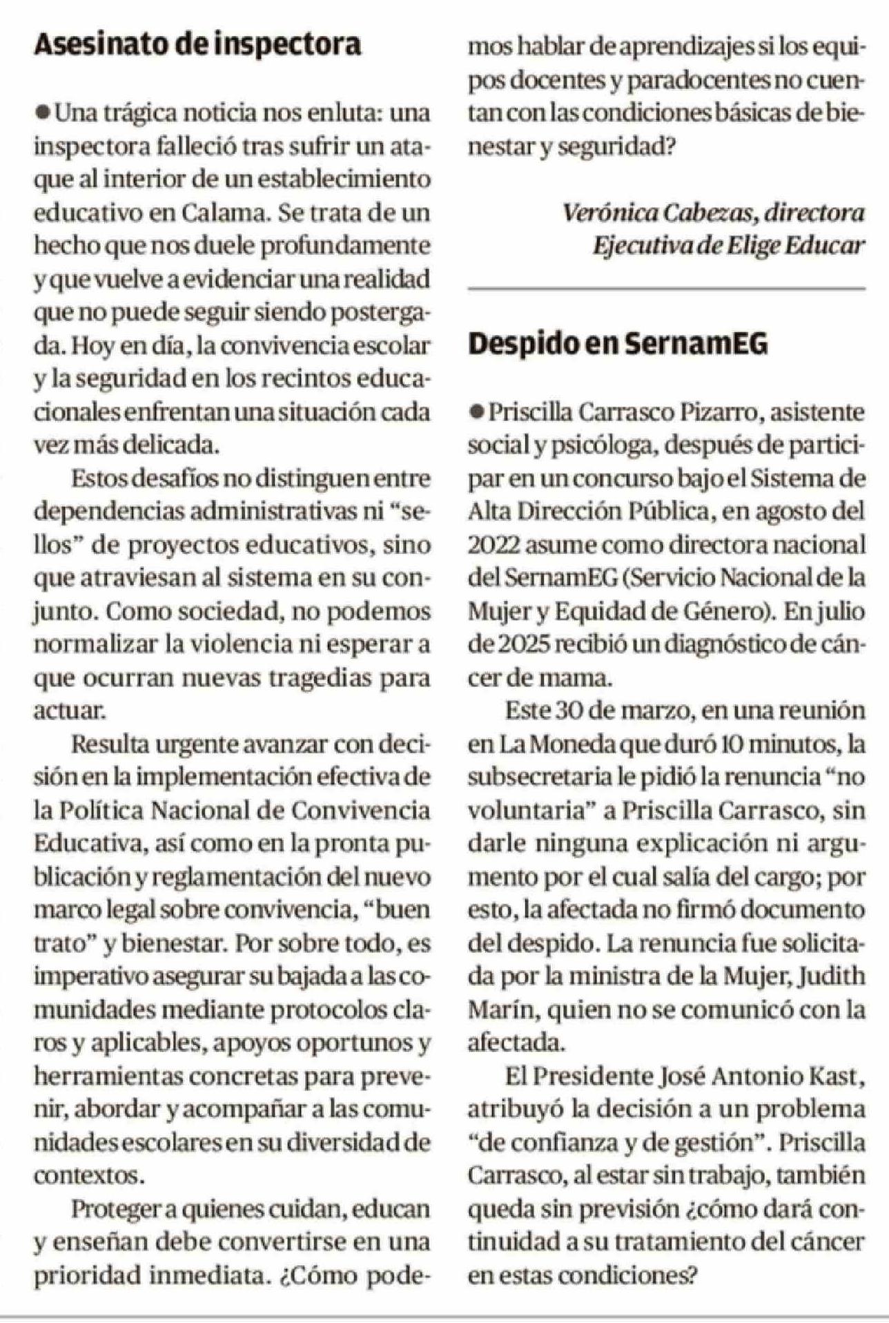 Cartas: Asesinato de inspectora 04-04-2026 El Llanquihue |
