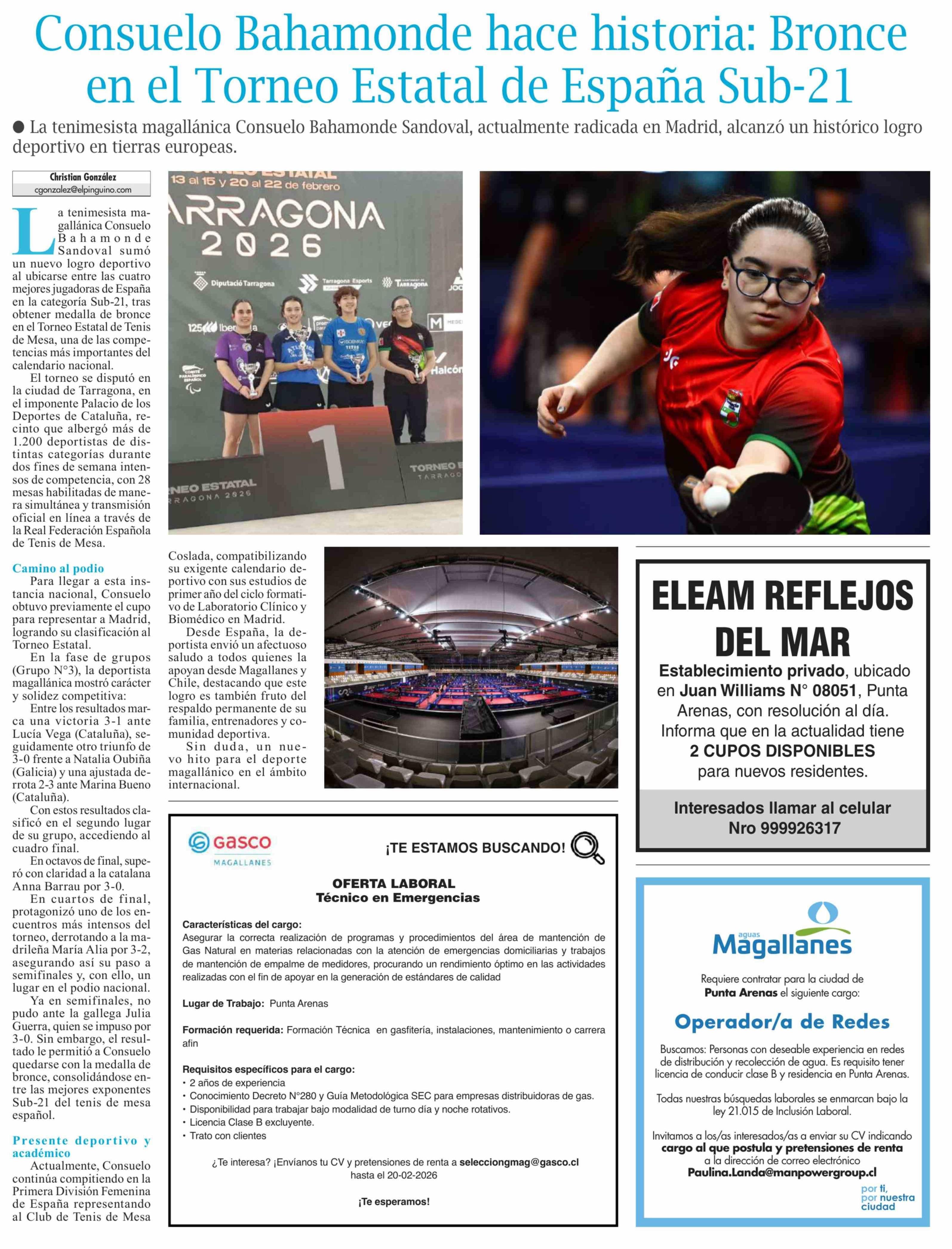 Fecha: 15-02-2026 Sector: Noticia general Región: Región de Magallanes y de la Antártica Chilena