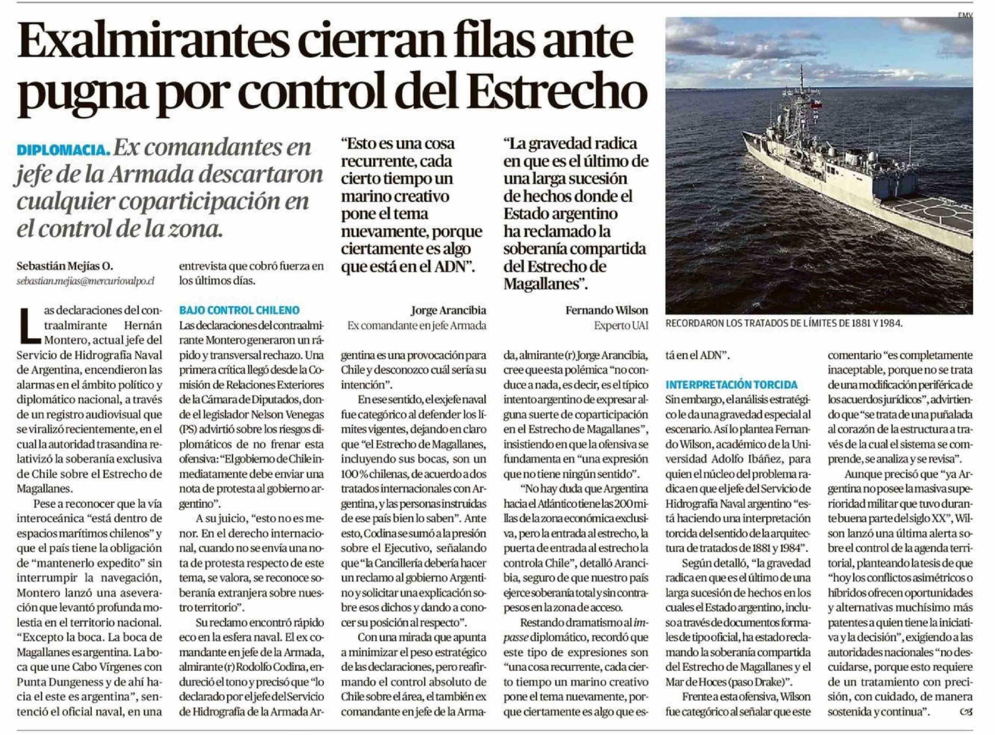 Título: Exalmirantes cierran filas ante pugna por control del Estrecho