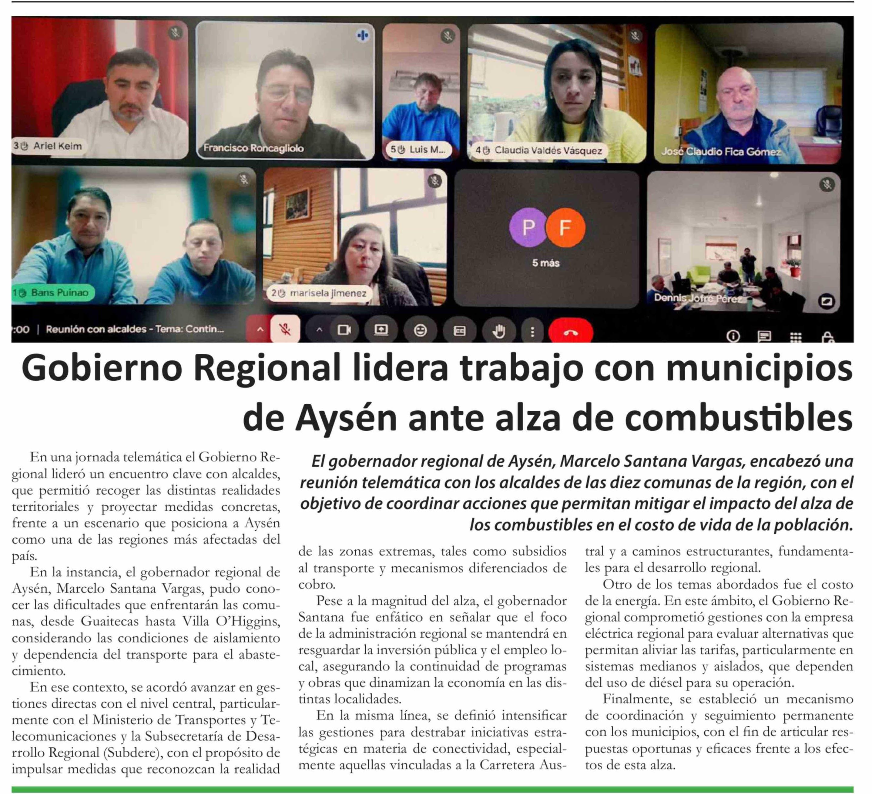 Título: Gobierno Regional lidera trabajo con municipios de Aysén ante alza de combustibles