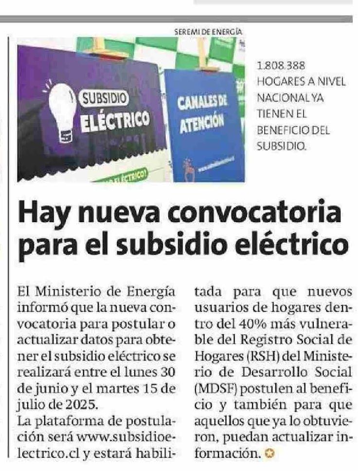 Hay nueva convocatoria para el subsidio eléctrico 02-06-2025 La Estrella de Antofagasta |