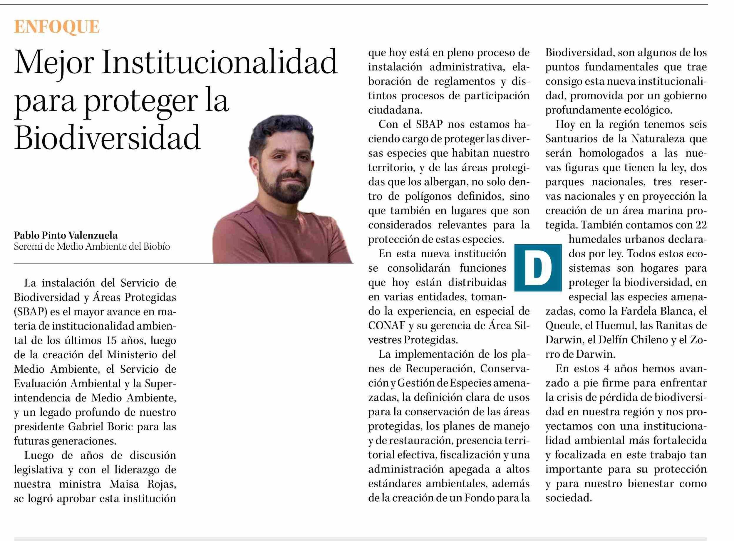 COLUMNAS DE OPINIÓN: Mejor Institucionalidad para proteger la Biodiversidad 22-05-2025 Diario Concepción |